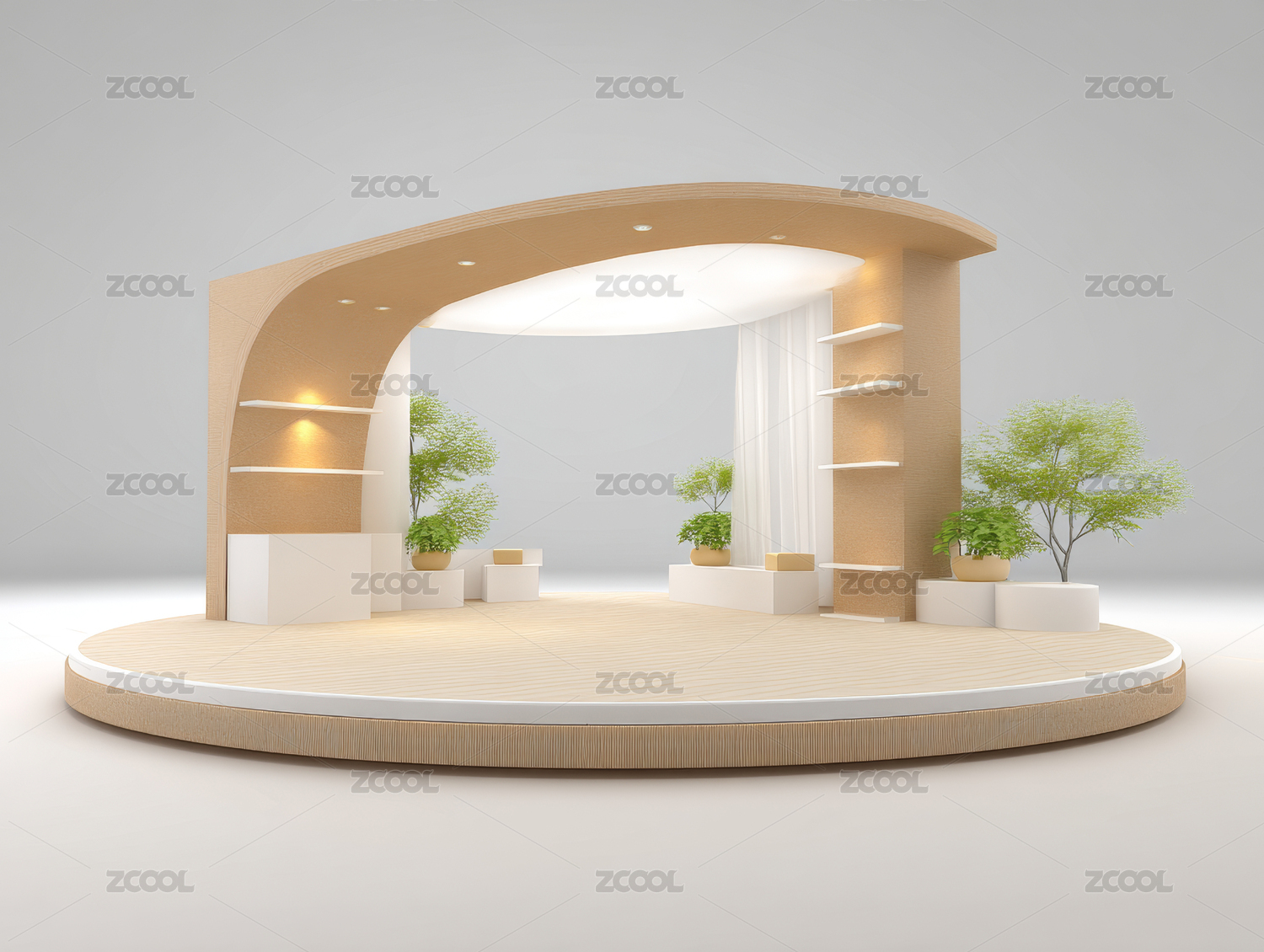 展厅,木质,结构,圆形,设计,室内,空间,灯光,照明,极简