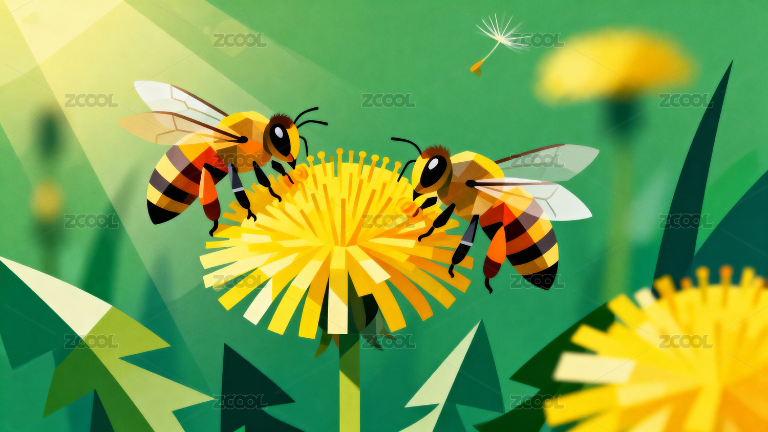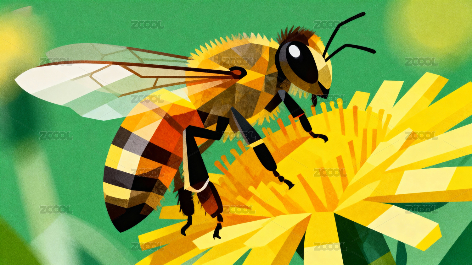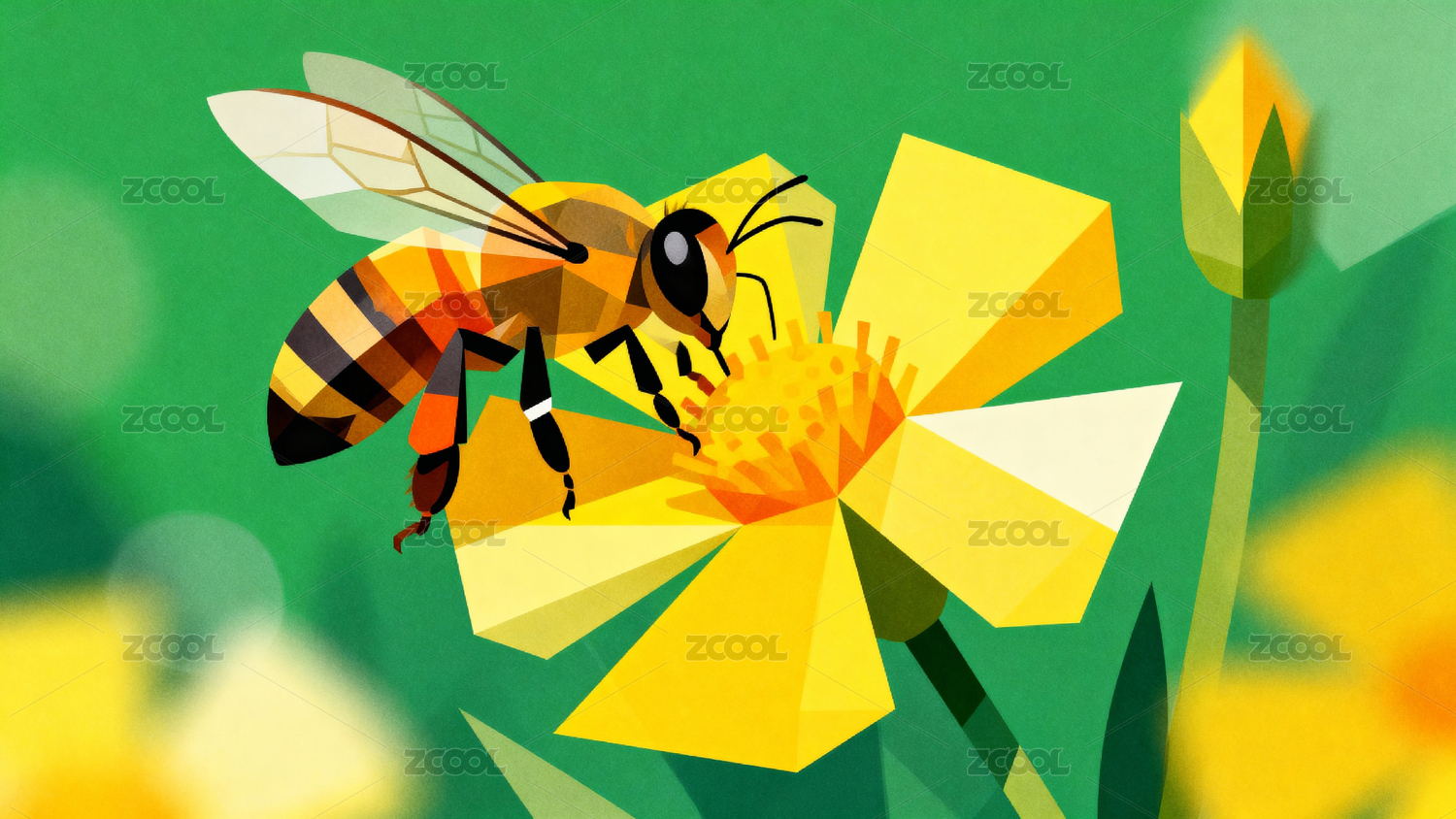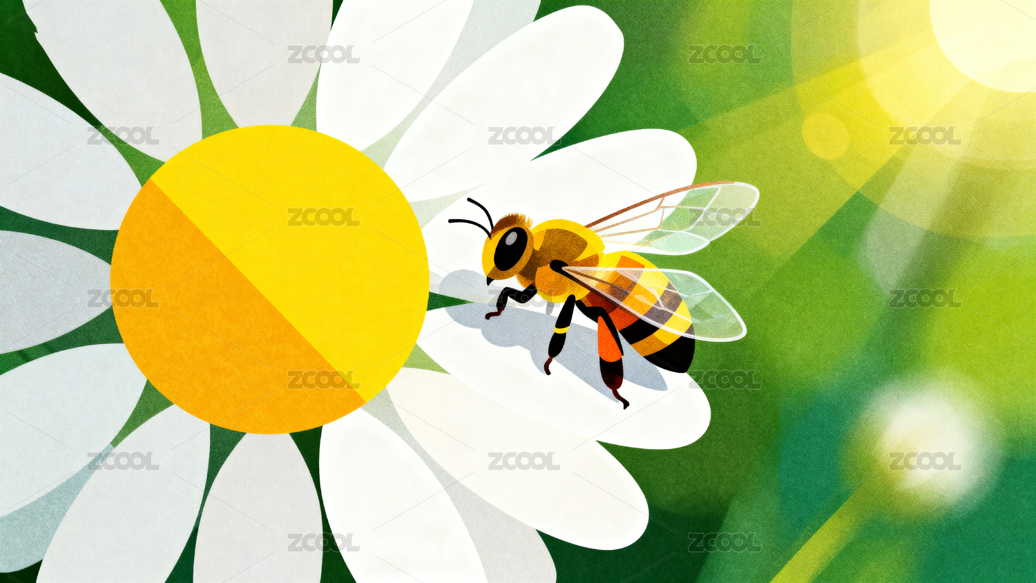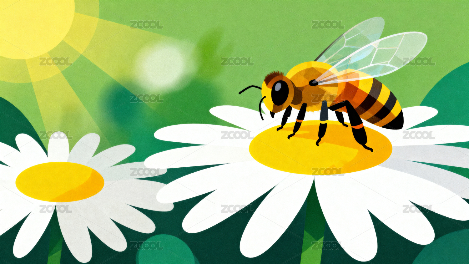 蜜蜂采蜜插画