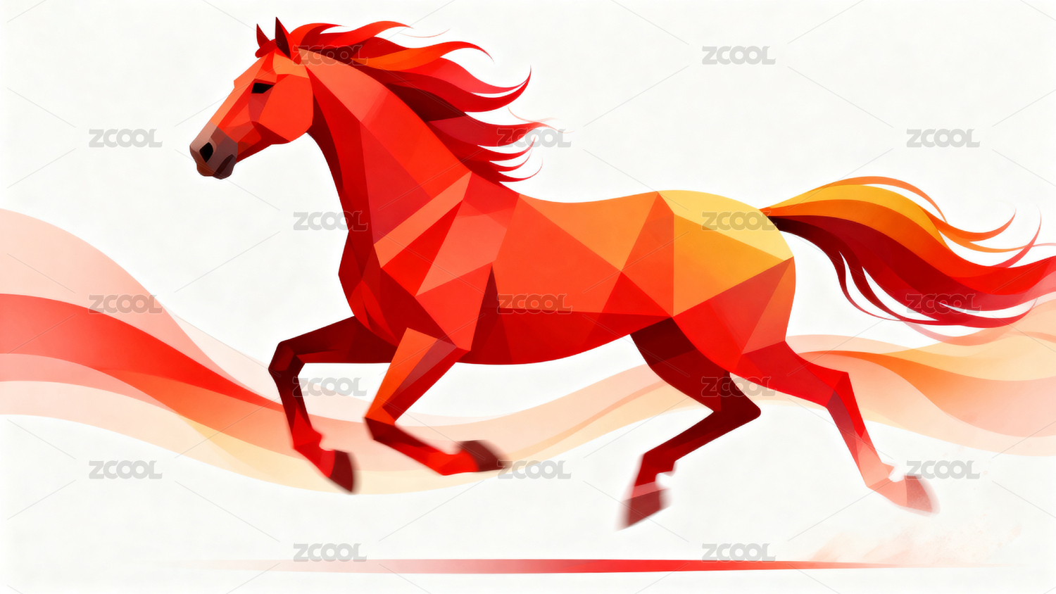 红色几何风格奔马动态图