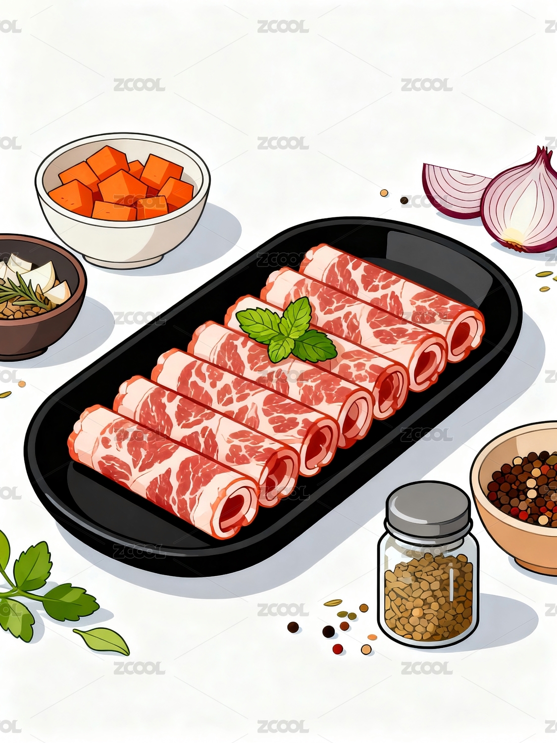 盘子,食物,切片,菜肴,美食,肉片,纹理,表面,摆盘,白色