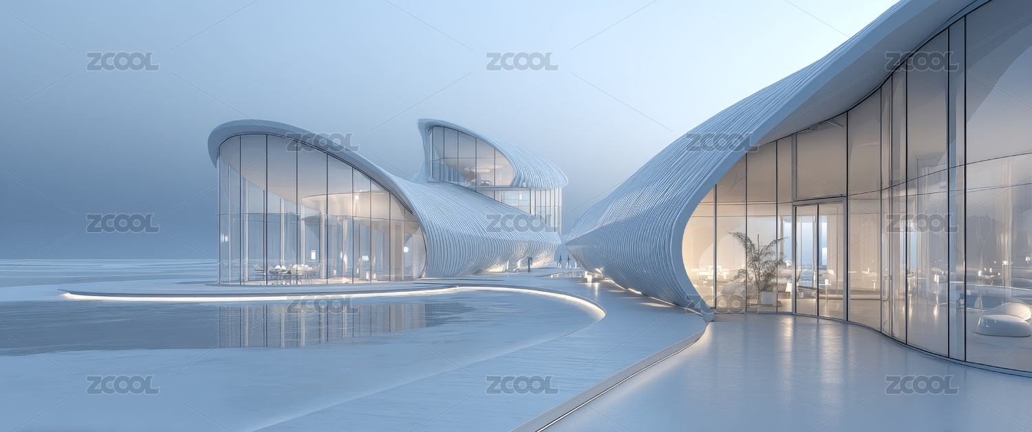 优雅,建筑,现代,外观,简约,时尚,流线型,白色,玻璃,曲线