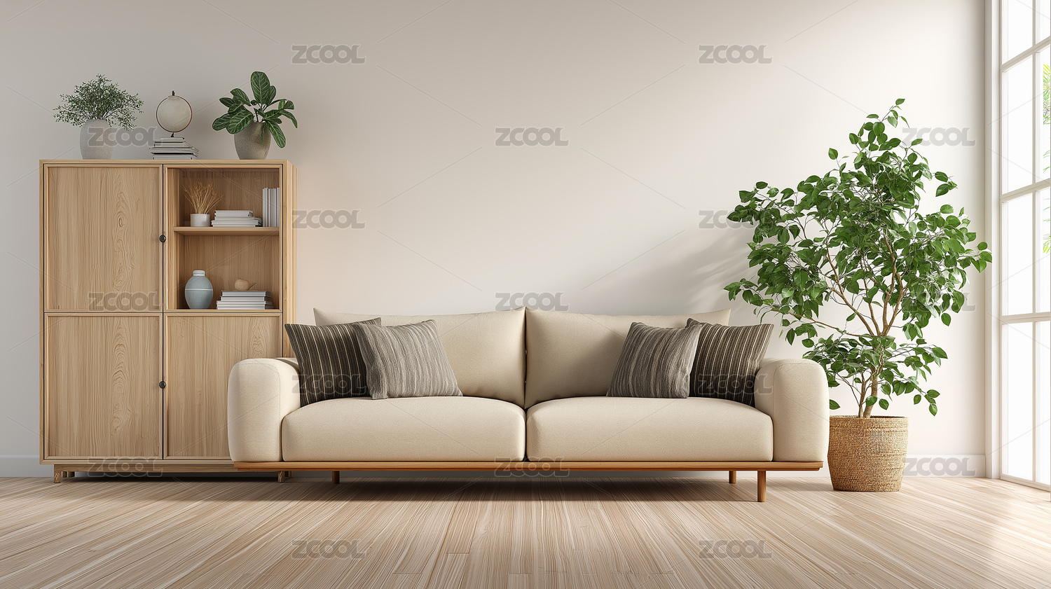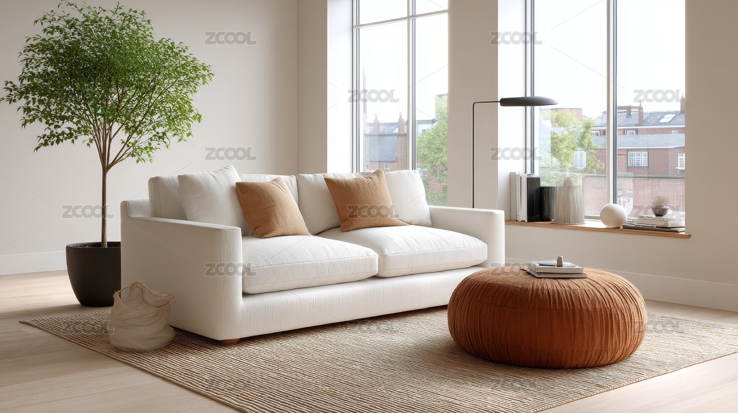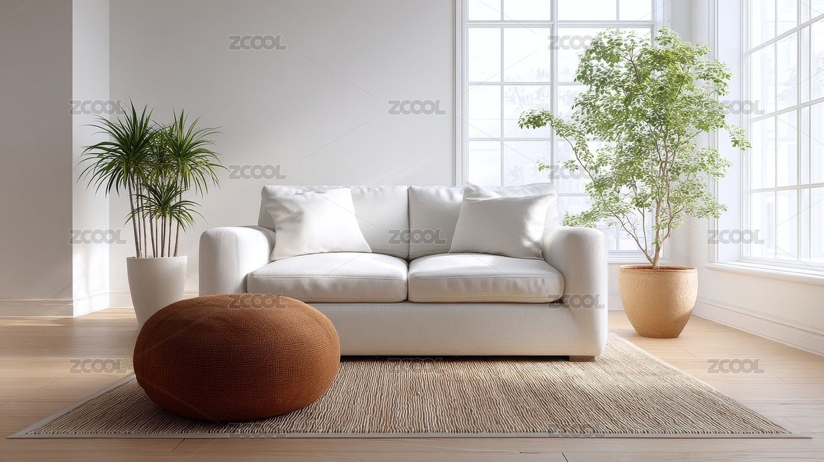 现代,绿植,自然,客厅,沙发,白色,光线,空间,简约,舒适