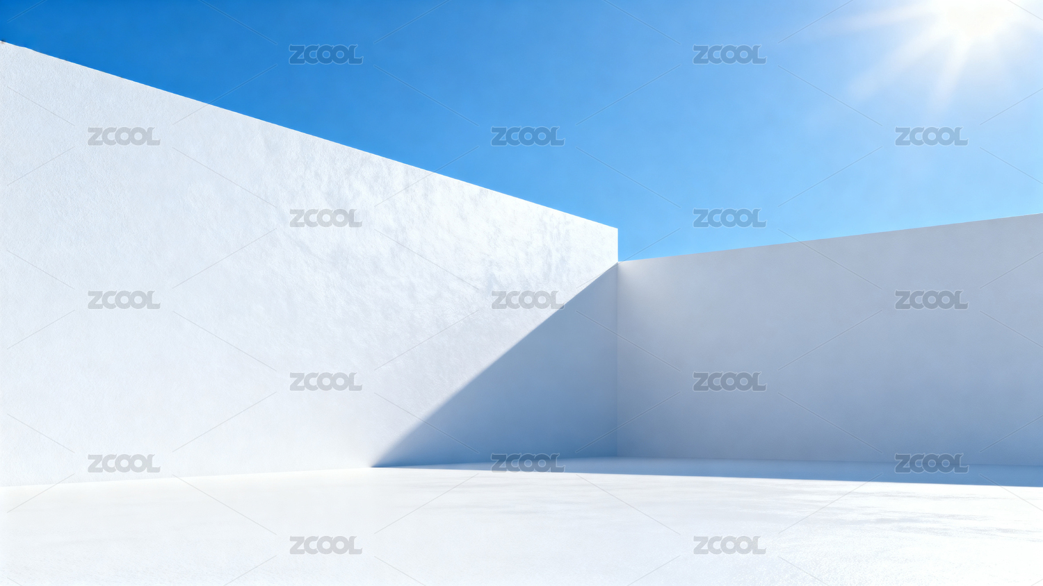 阳光下的白色墙壁角落