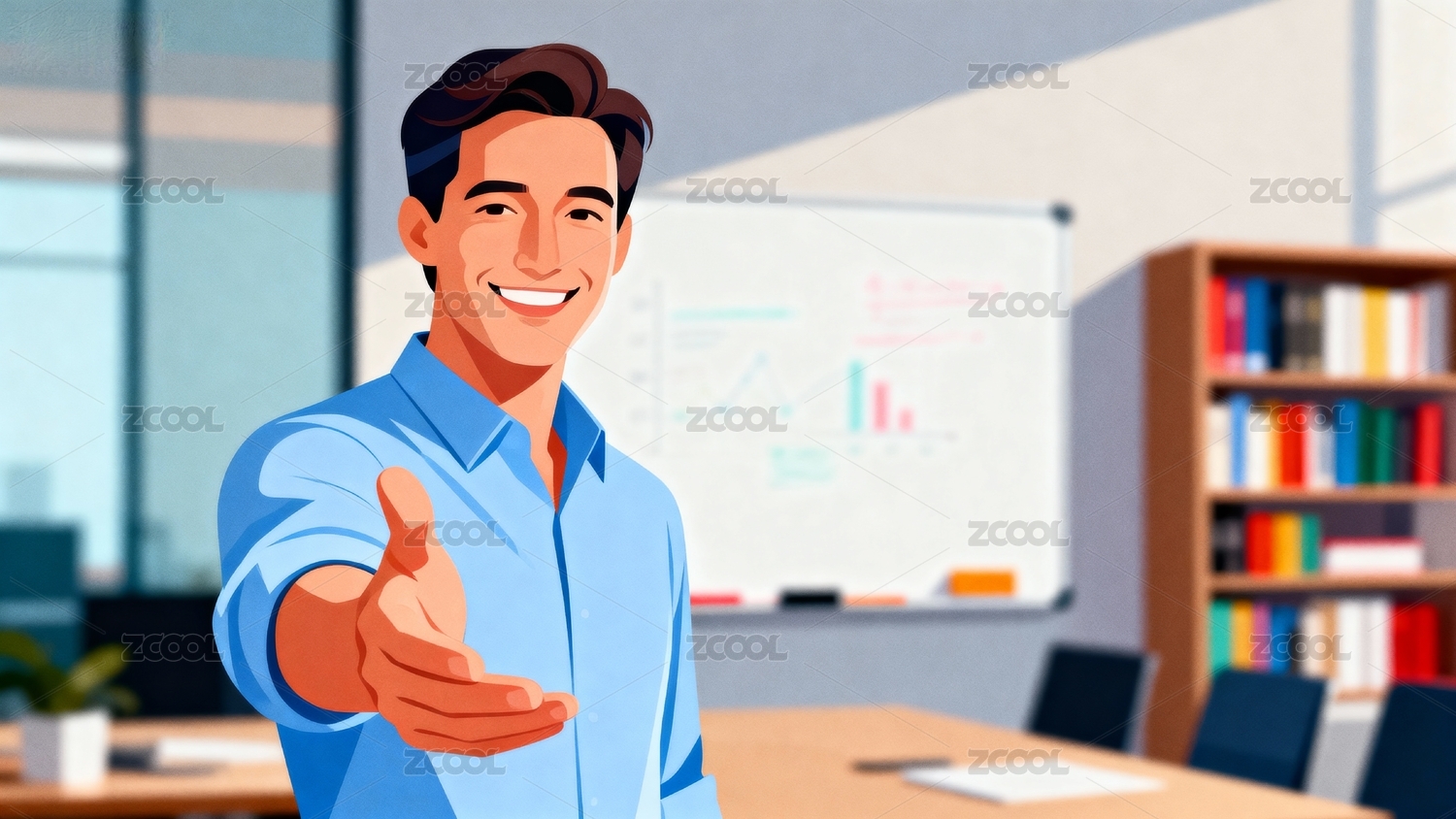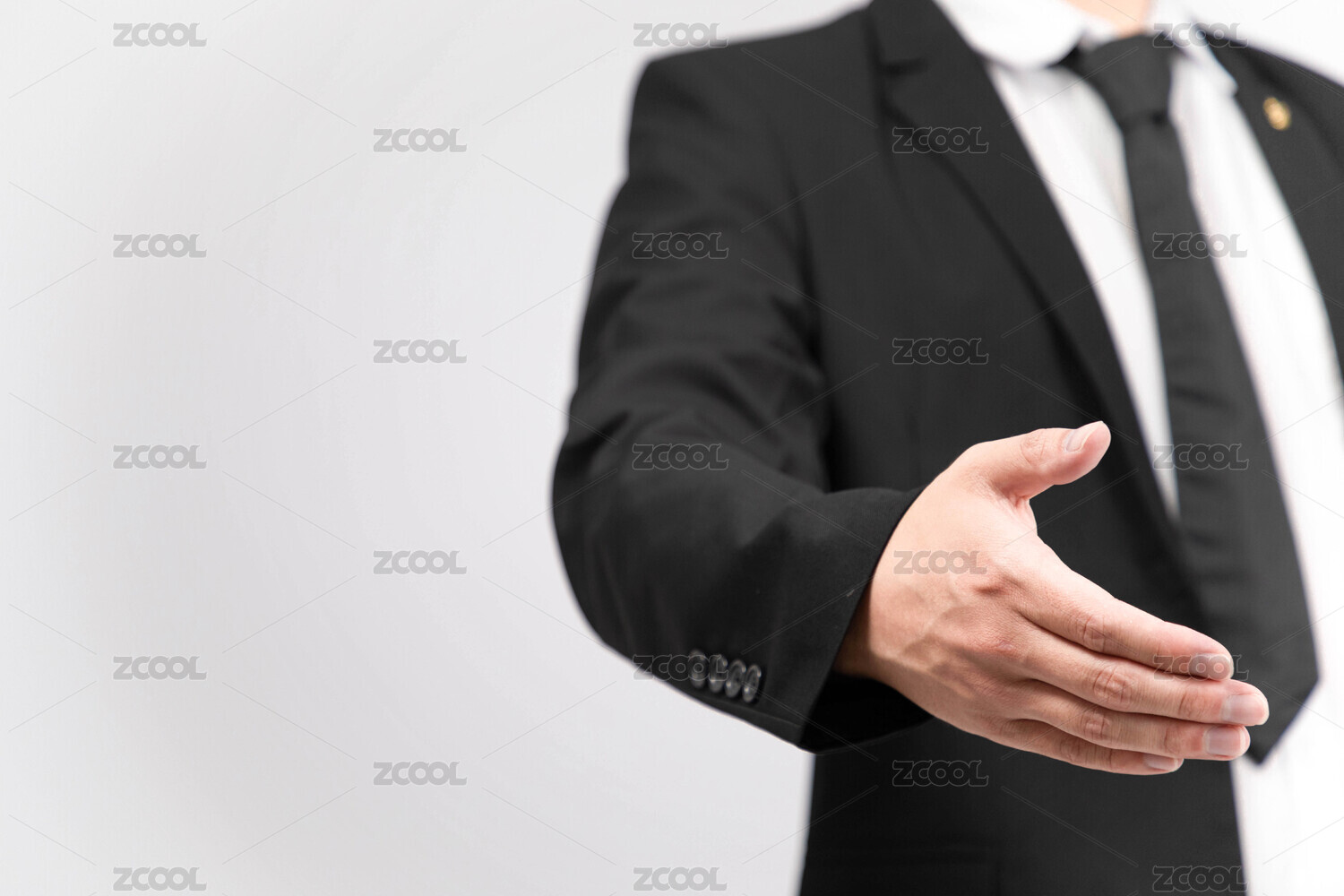 白背景前穿着黑色西服的男士伸手竖起大拇指