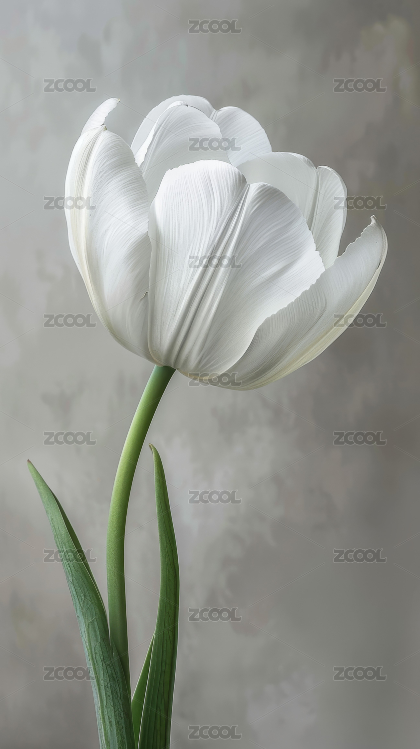 单茎白色郁金香在浅色背景中优雅绽放