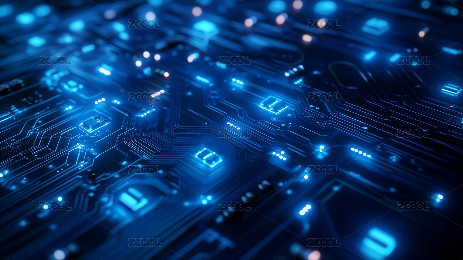 蓝色电路板发光特效科技感十足