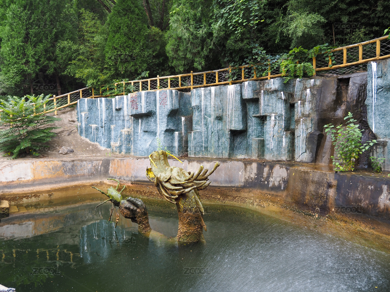 中式古典园林里的石磨流水水池