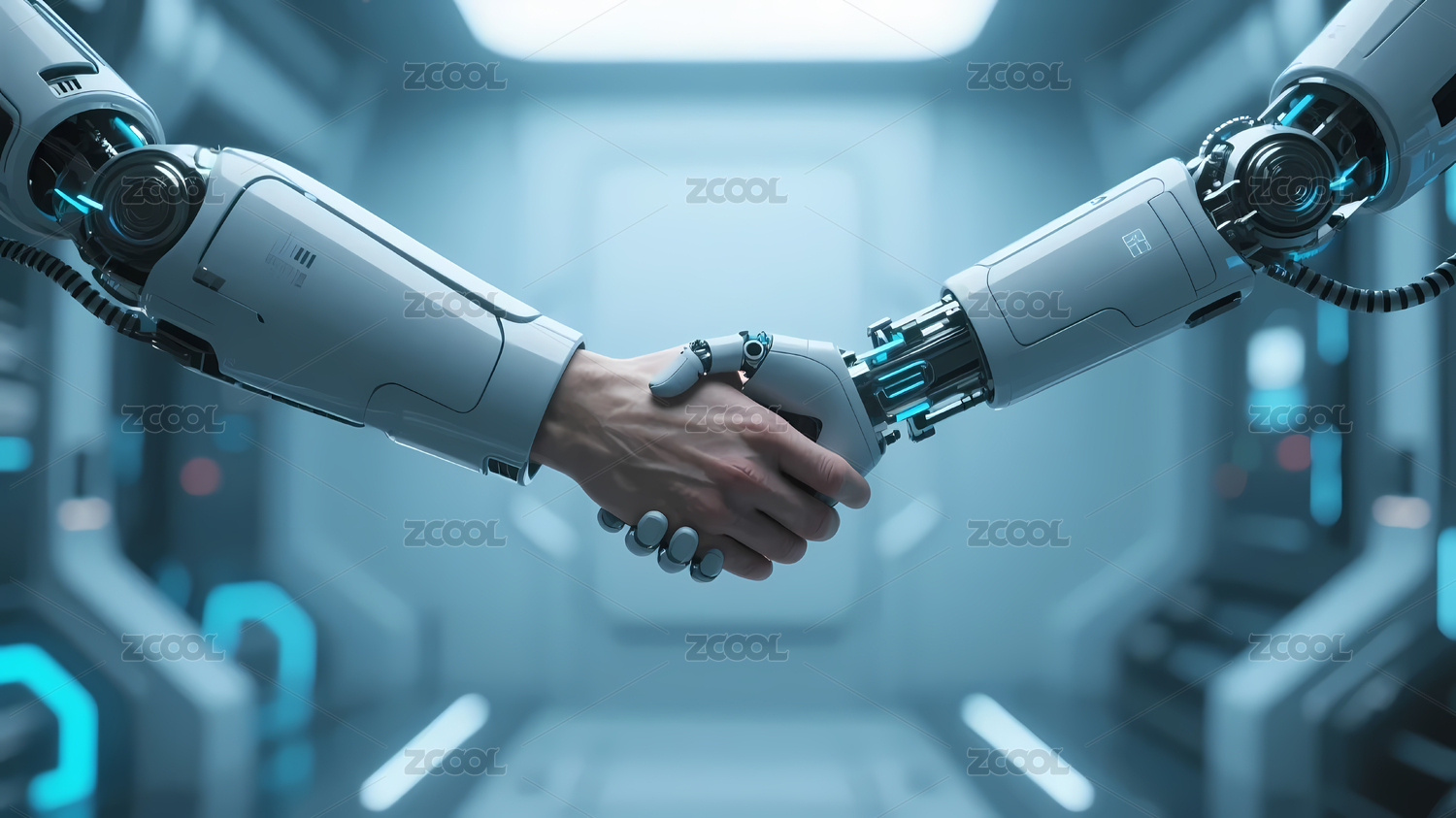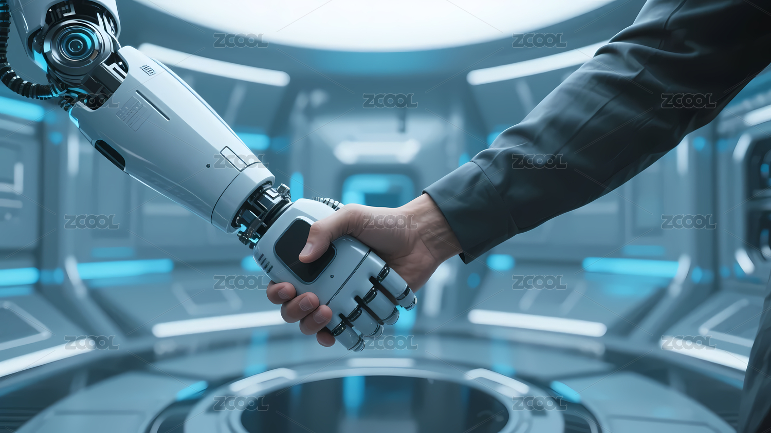 机器人与人握手象征科技合作