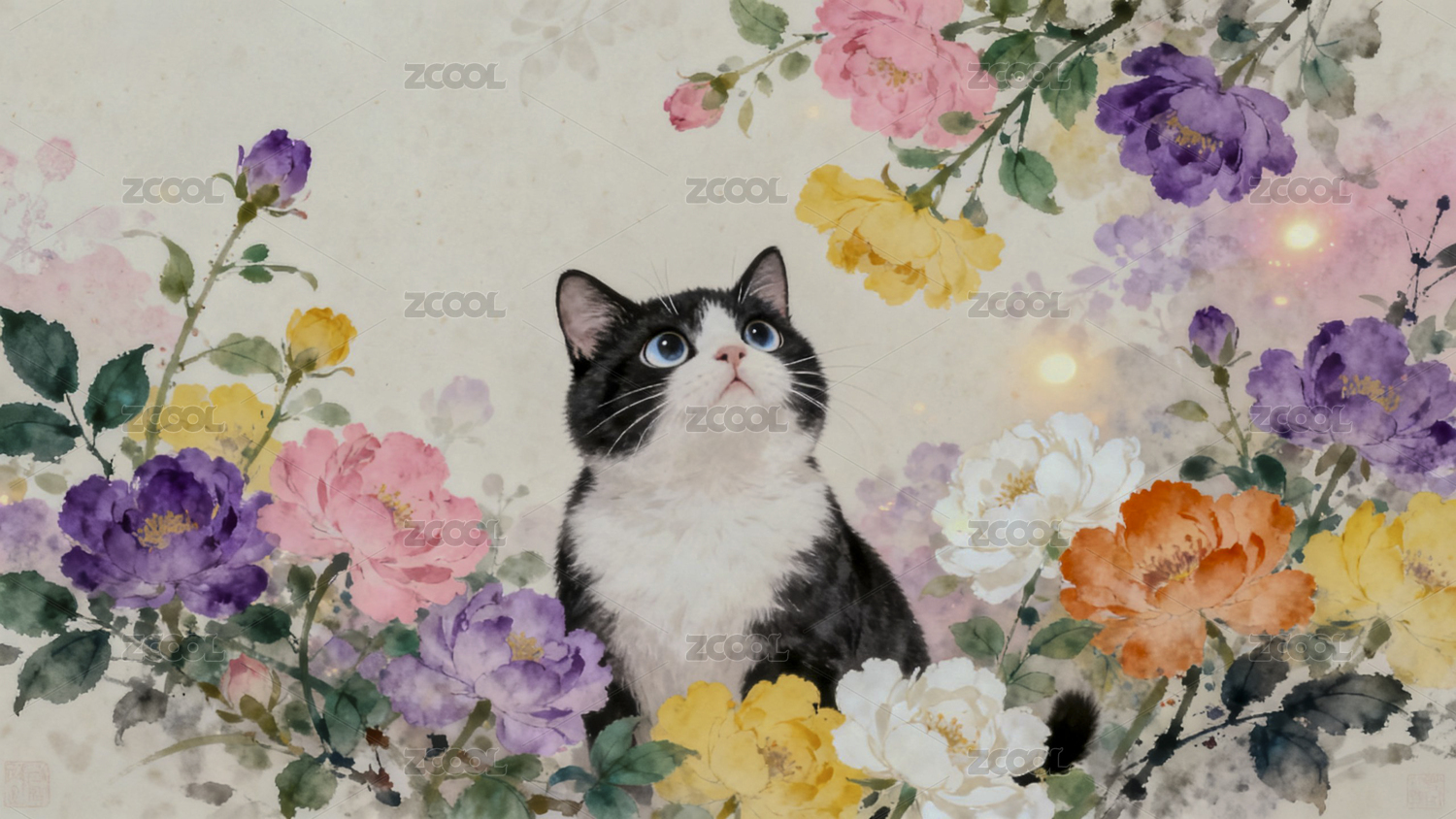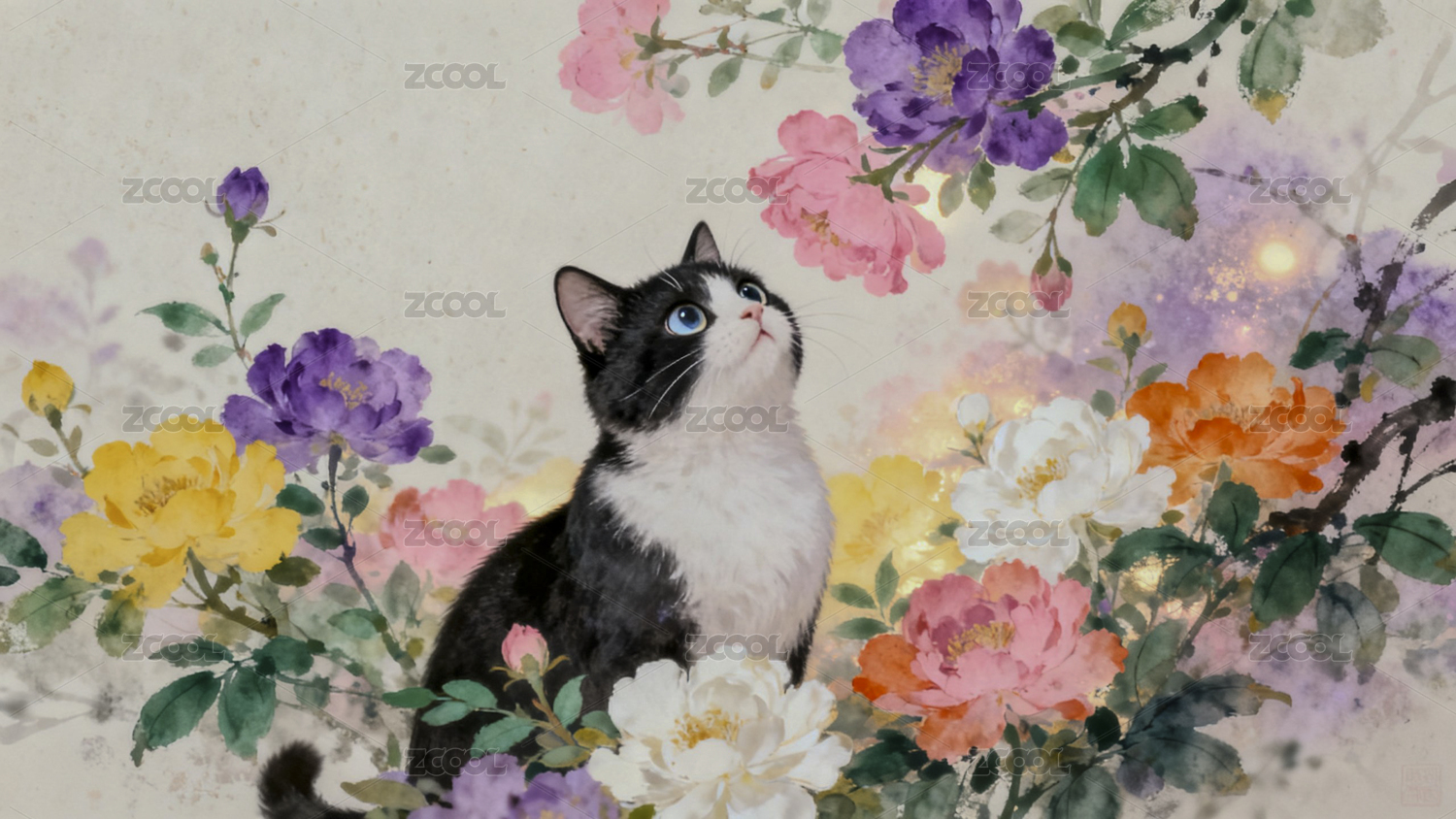 国风传统水墨工笔画慵懒的猫咪艺术背景