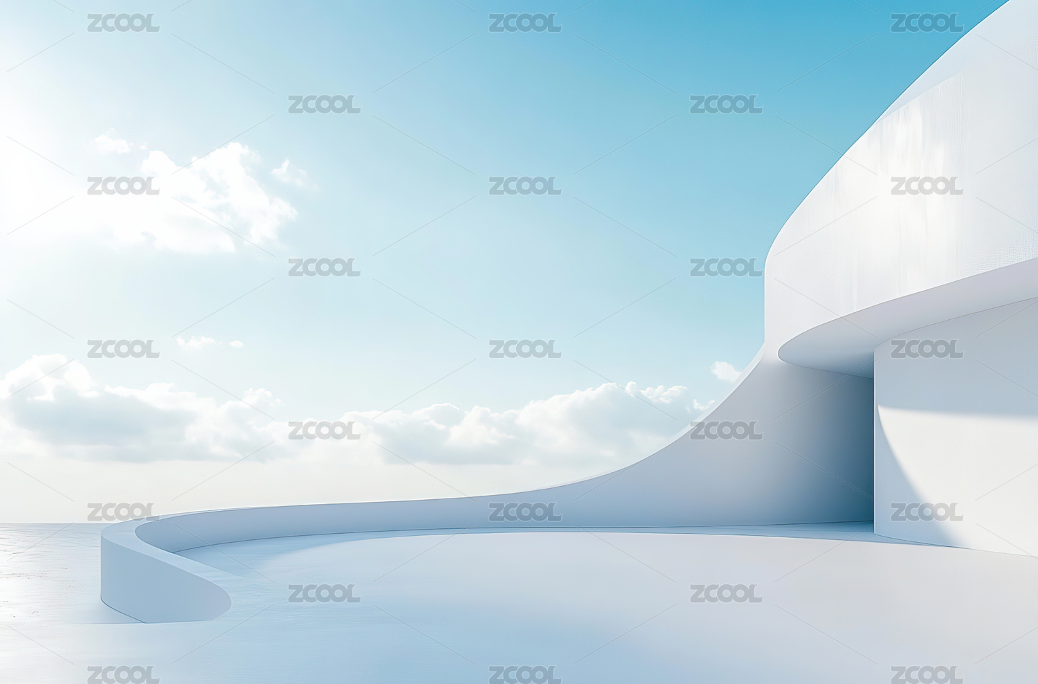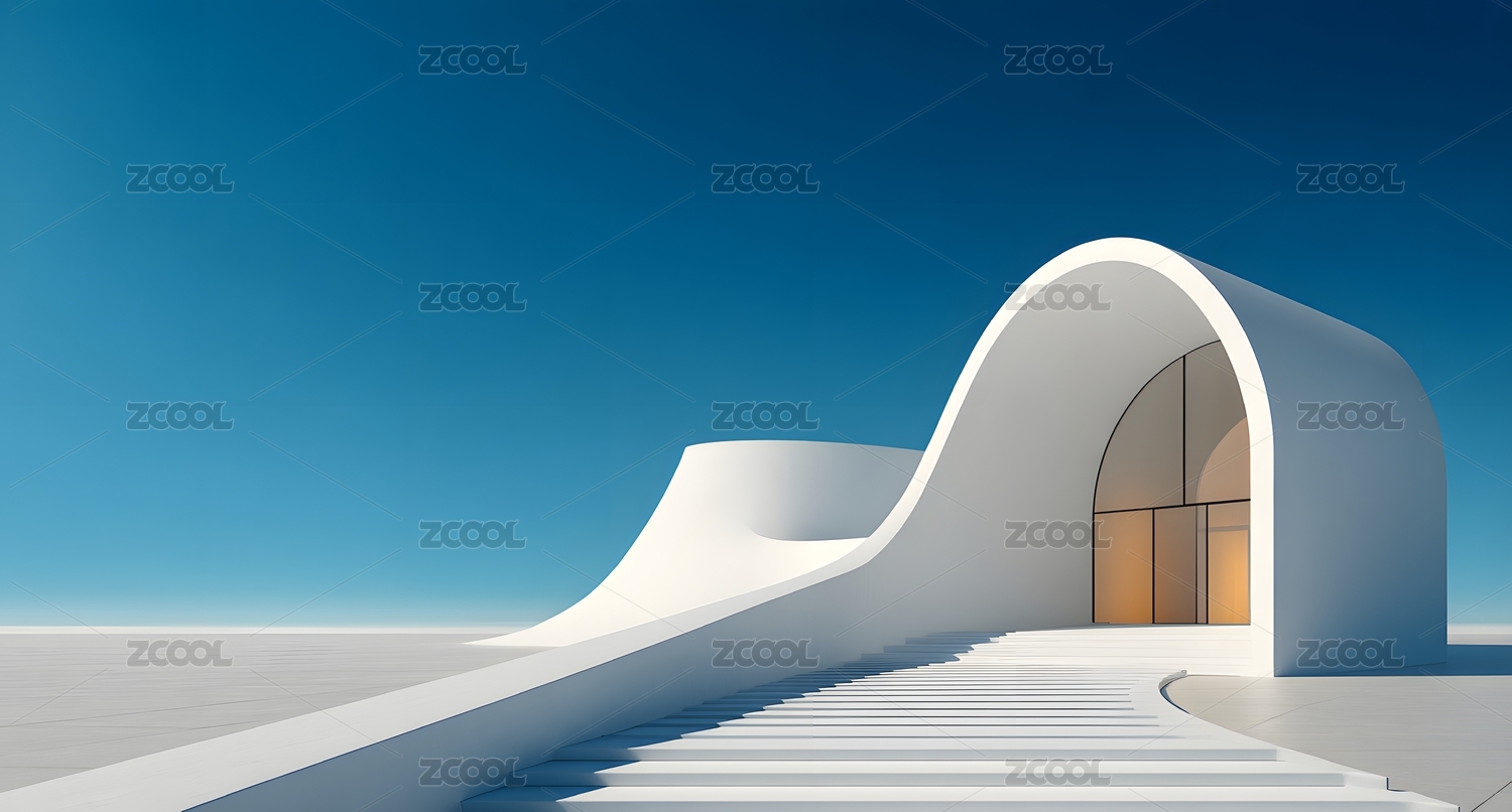 白色弧形建筑与蓝天海景