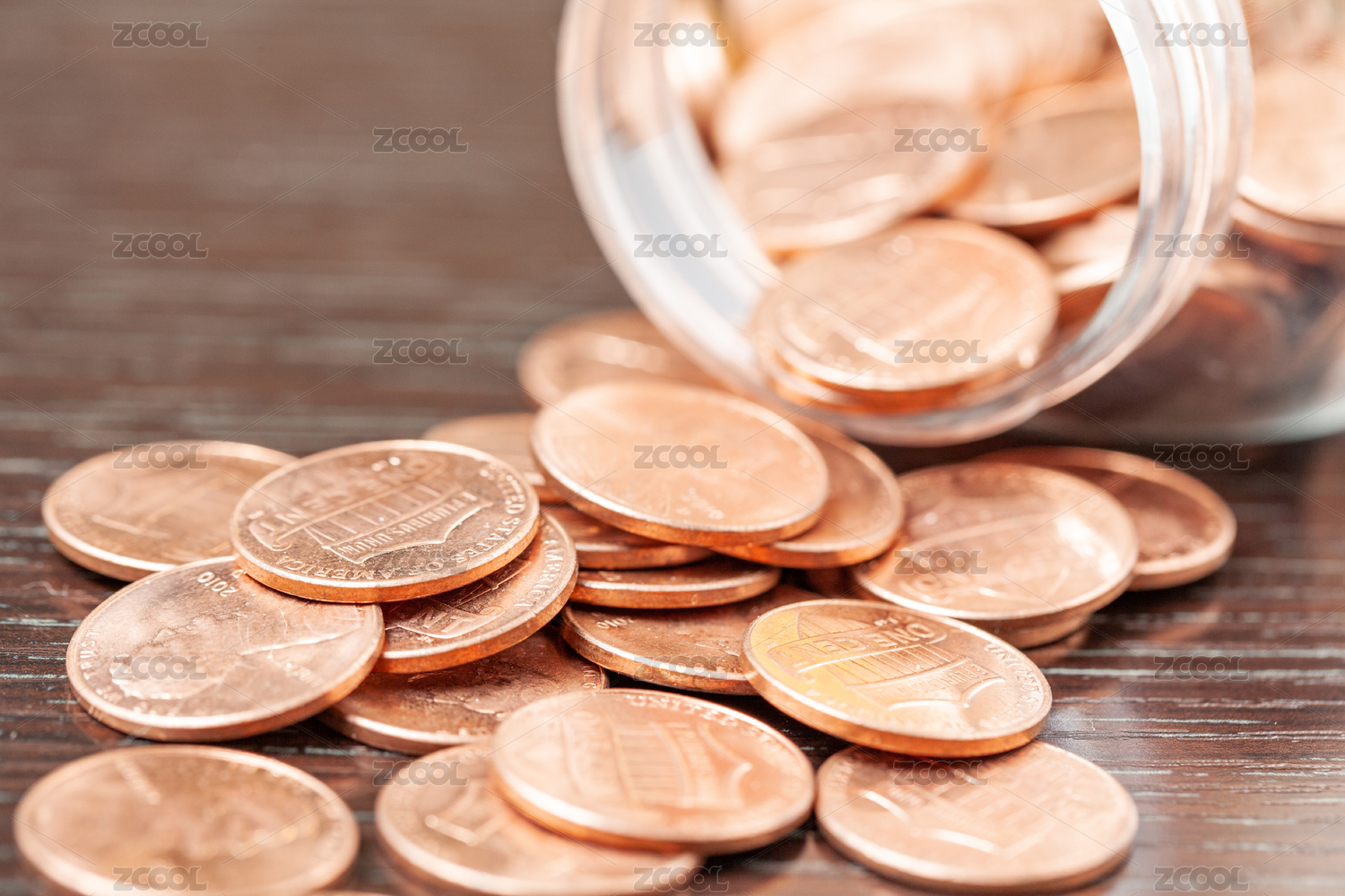 玻璃瓶流出的美元硬币