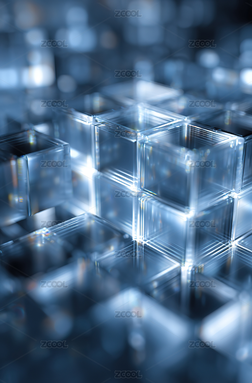 抽象,几何,科技,现代,渐变,金属,立方体,深蓝,光泽,结构