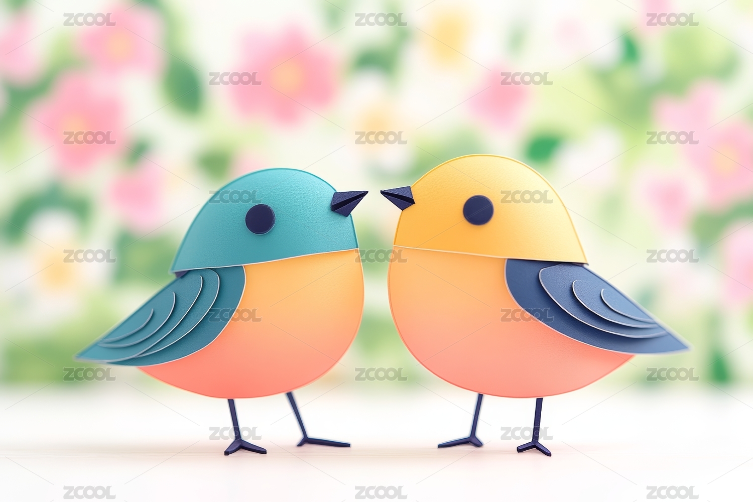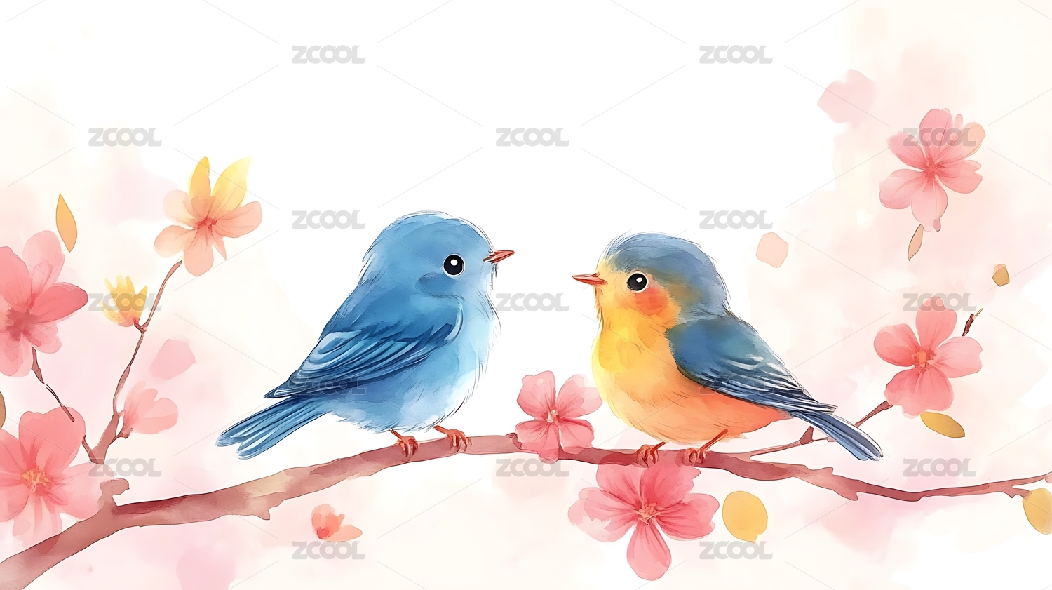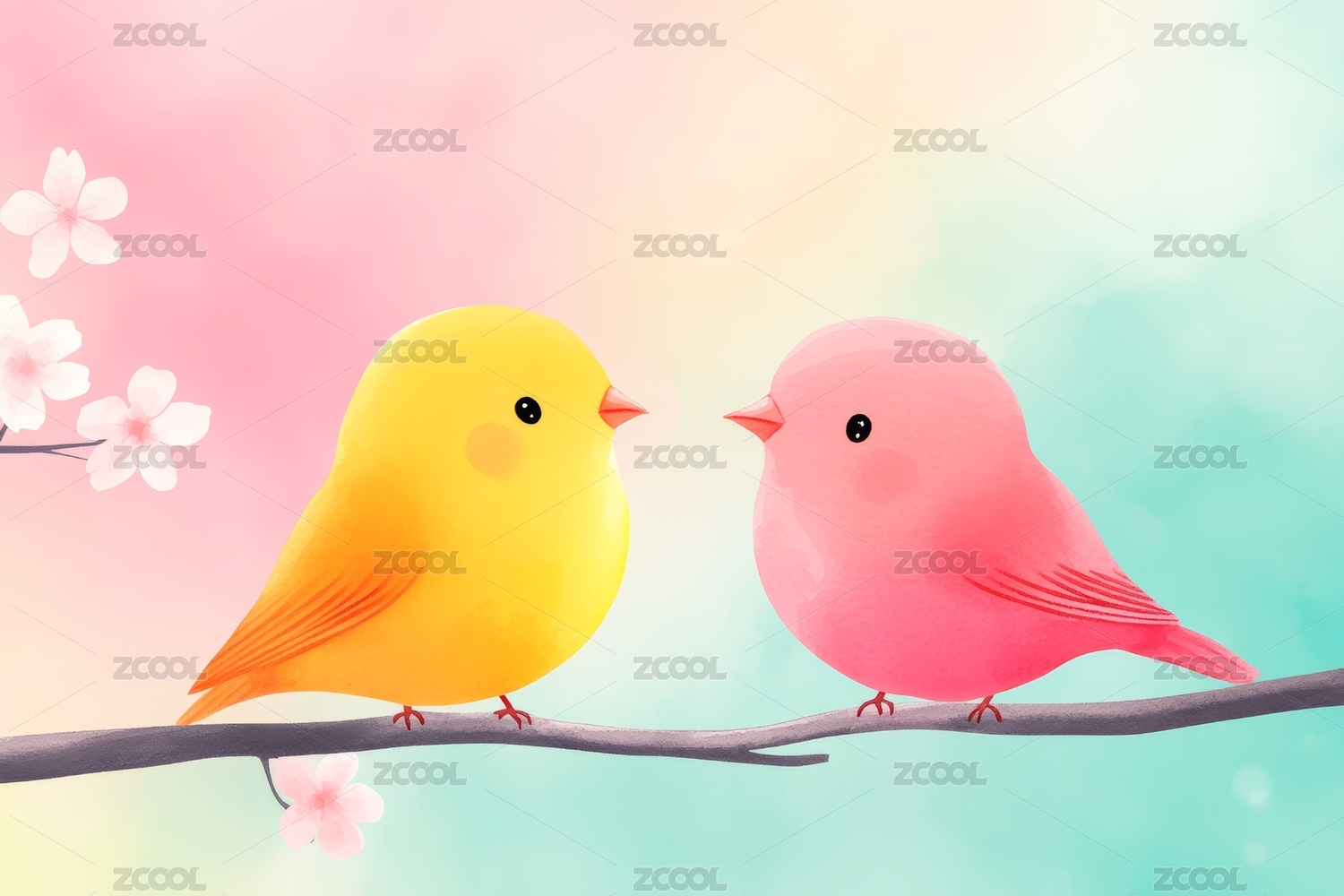 粉色黄色小鸟对望