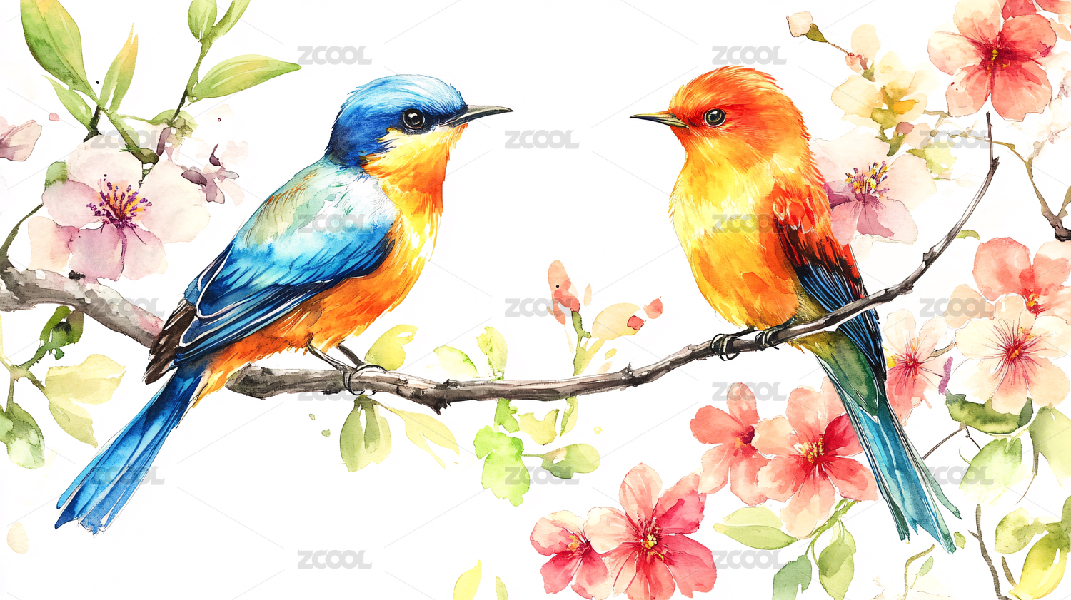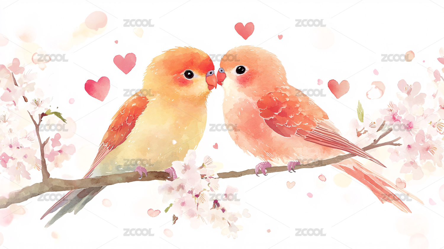 水彩风格爱情鸟主题插画