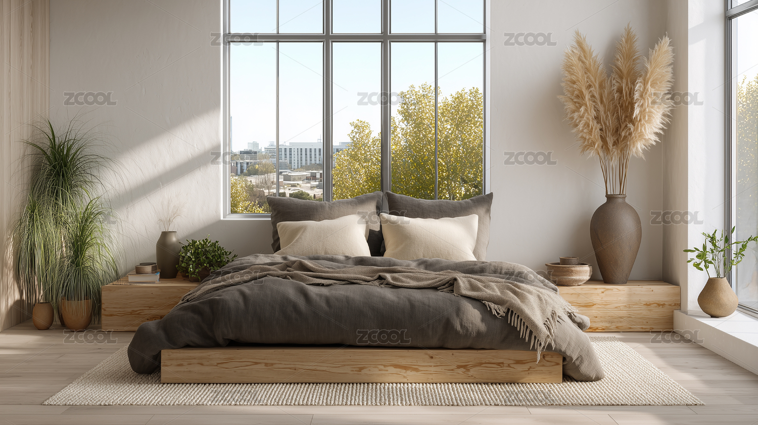 宽敞,明亮,整洁,植物,舒适,简约,当代,放松,卧室,宁静