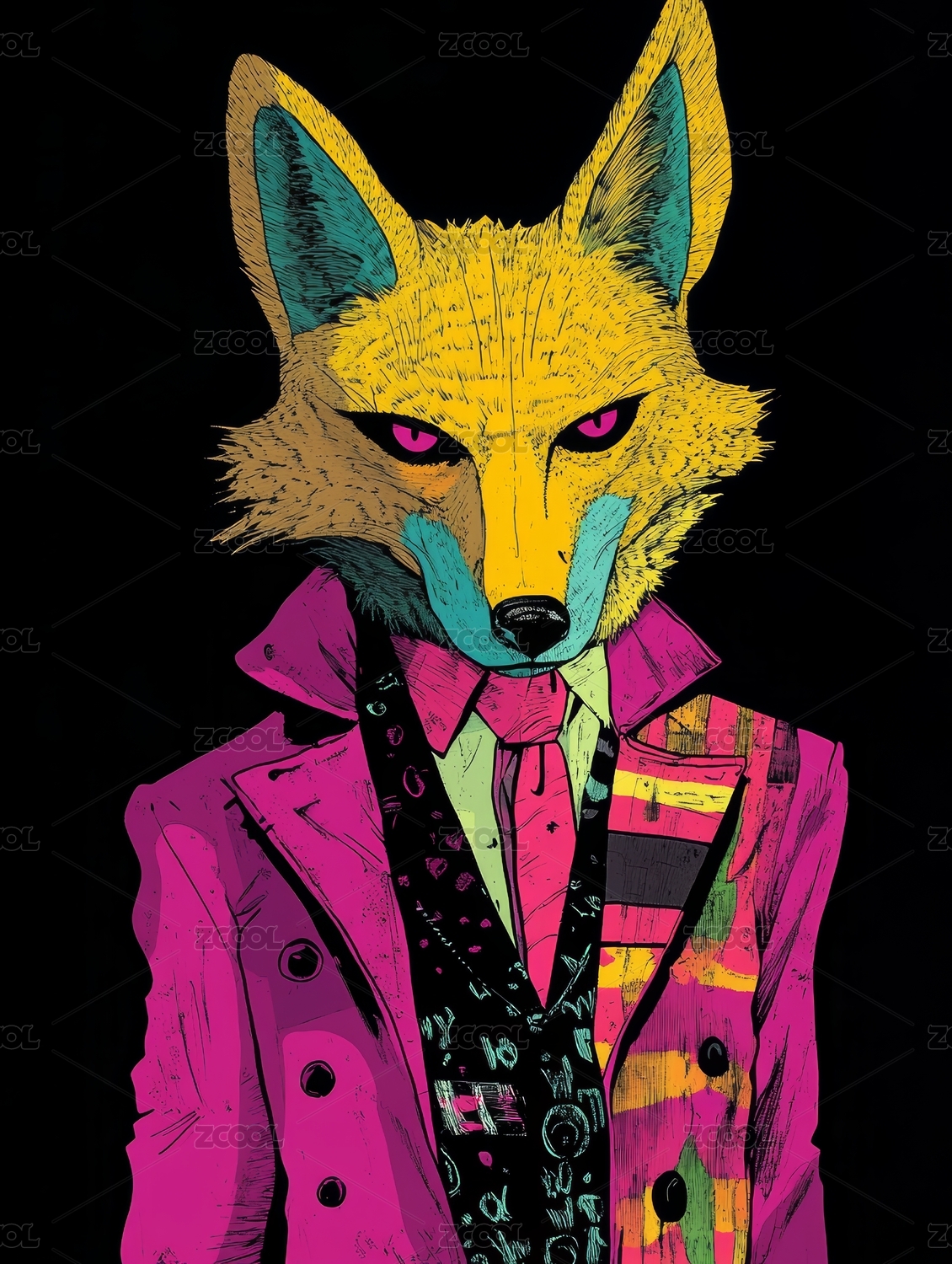 潮酷嘻哈狐狸时尚展示场景