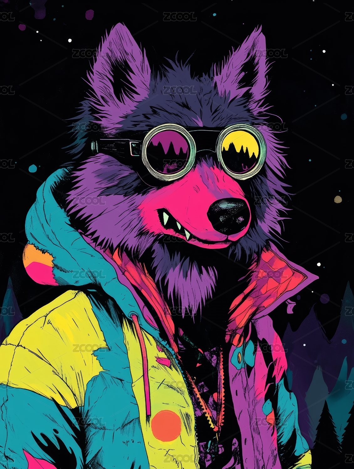 狗拟人潮流酷炫插画