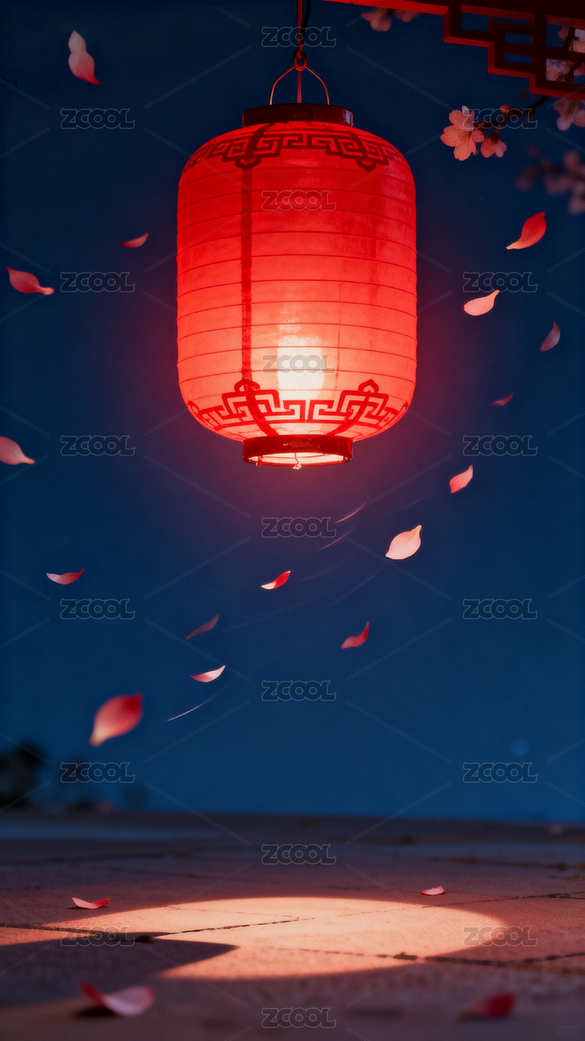 红灯笼夜色花瓣飞舞