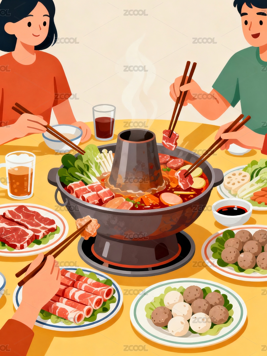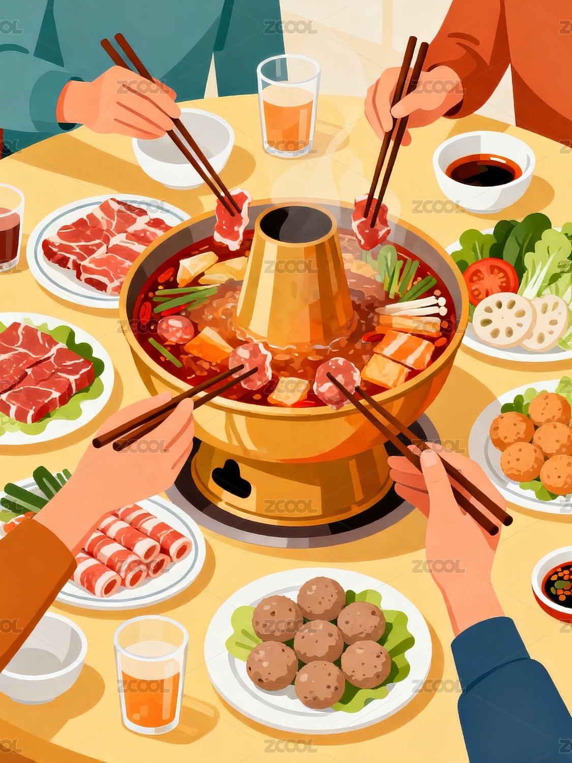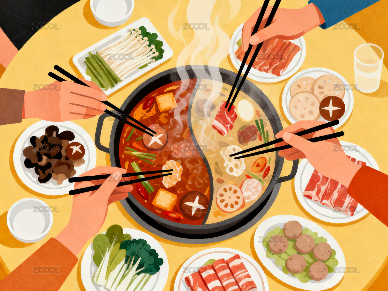 火锅美食插画