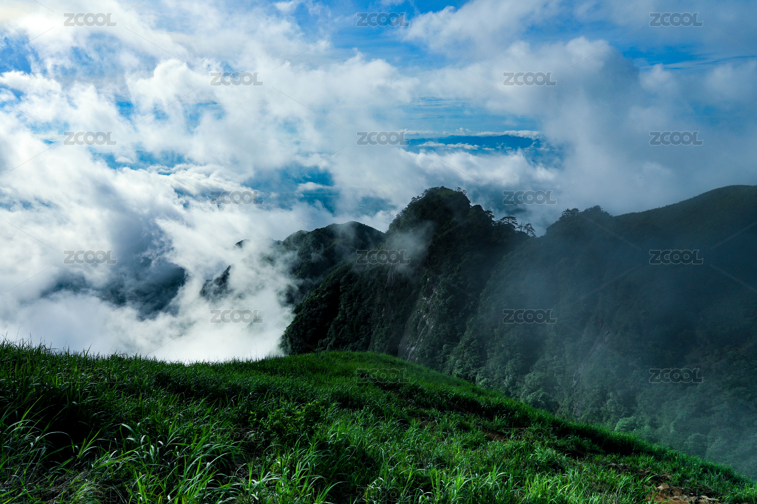 广东省阳江市阳春双滘鸡笼顶风光,雾笼大山景观