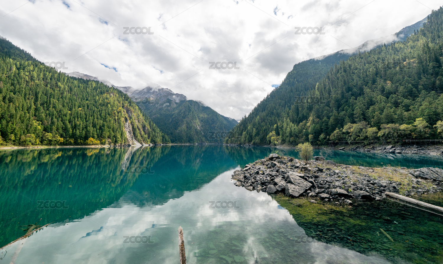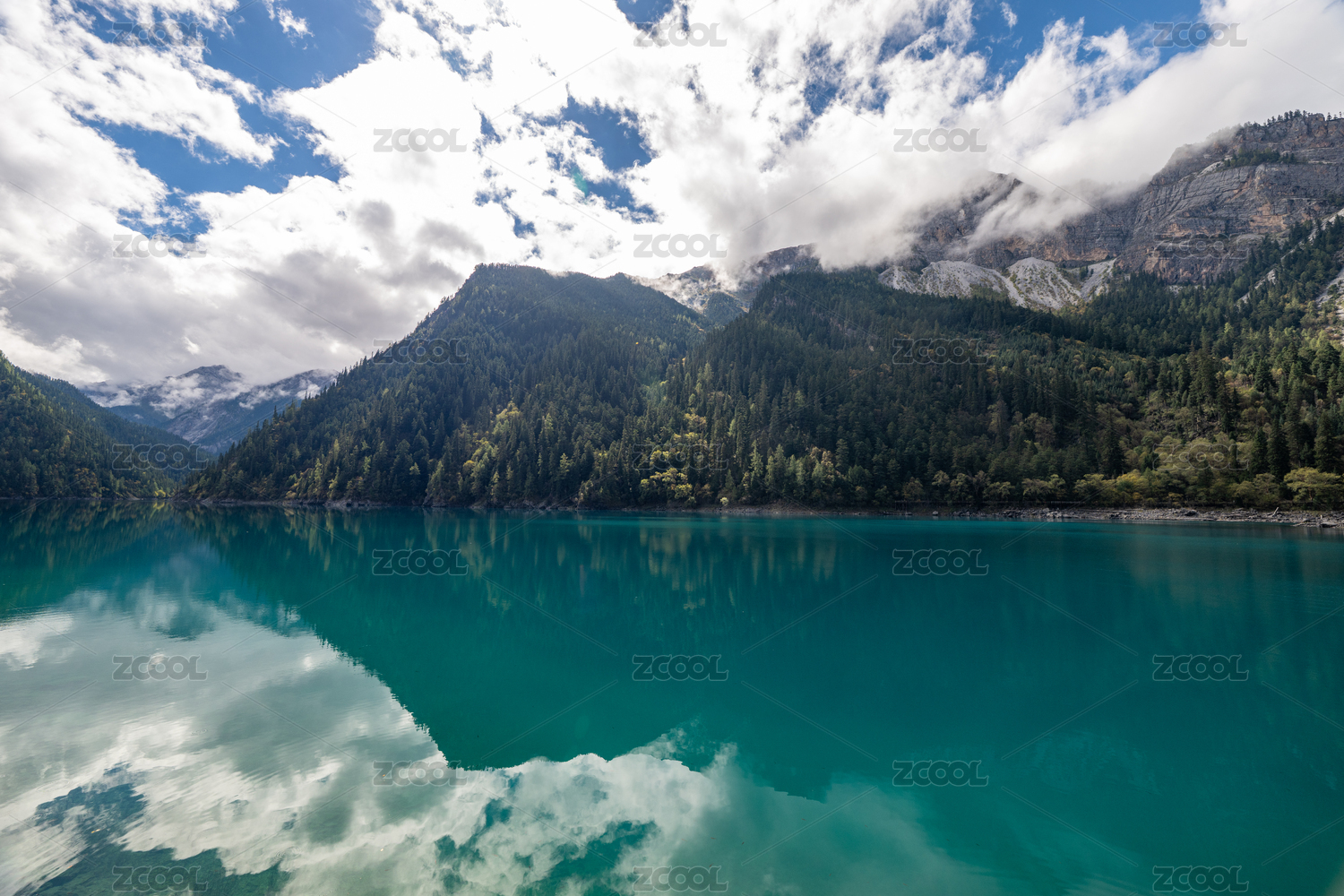 晴朗夏季拍摄的四川九寨沟长海