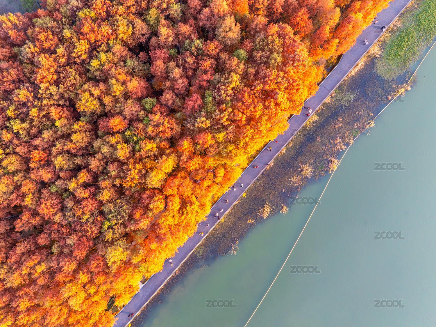 秋日湖畔林道俯瞰