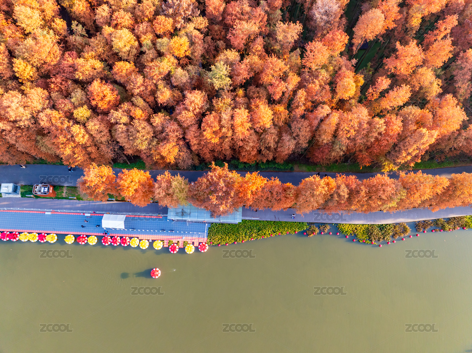 环境,建筑,落叶,公园,道路,林地,橙色,红色,生态,航拍