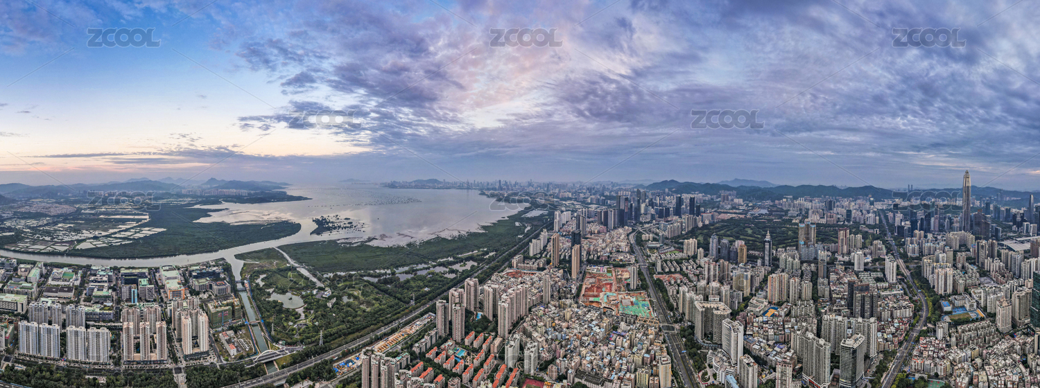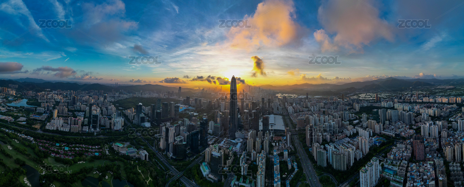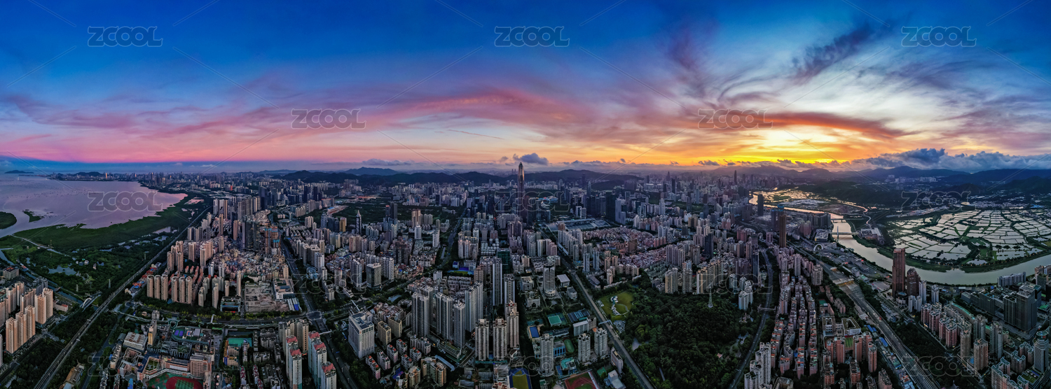 广东深圳福田区车公庙日落全景航拍