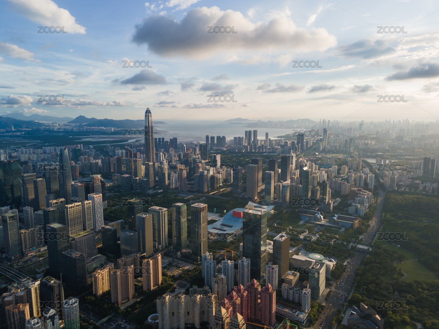 深圳,福田,福田中心,航拍,高楼,天际线,绿地,住宅区,写字楼,都市风光