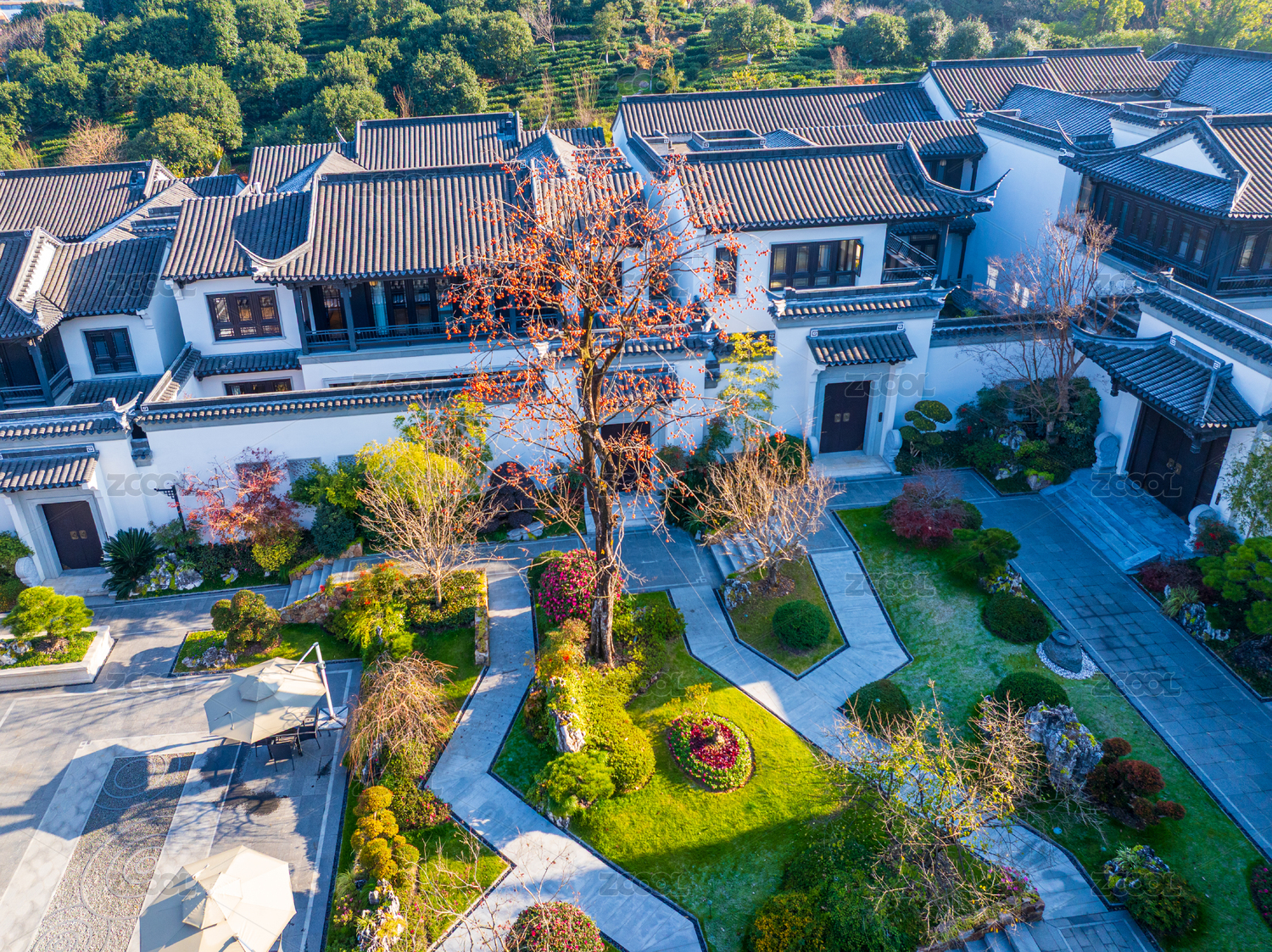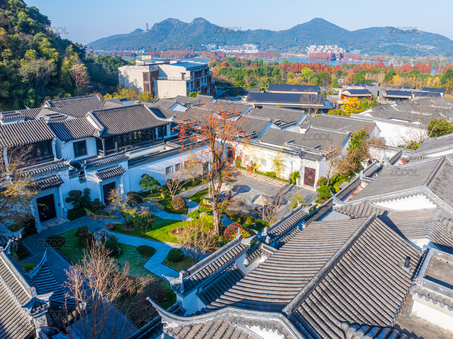 传统庭院秋景俯瞰图