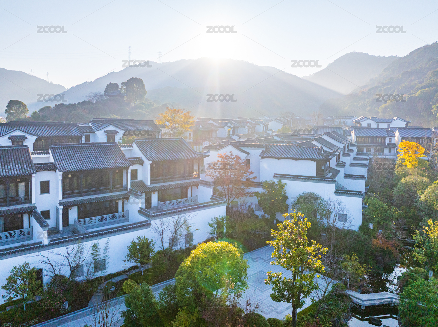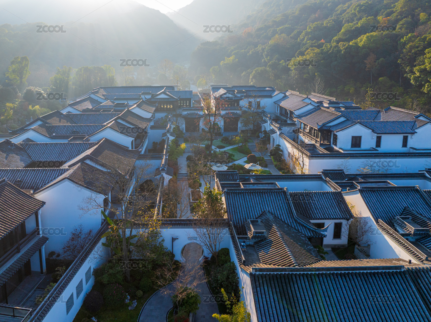 传统建筑群的晨曦俯瞰