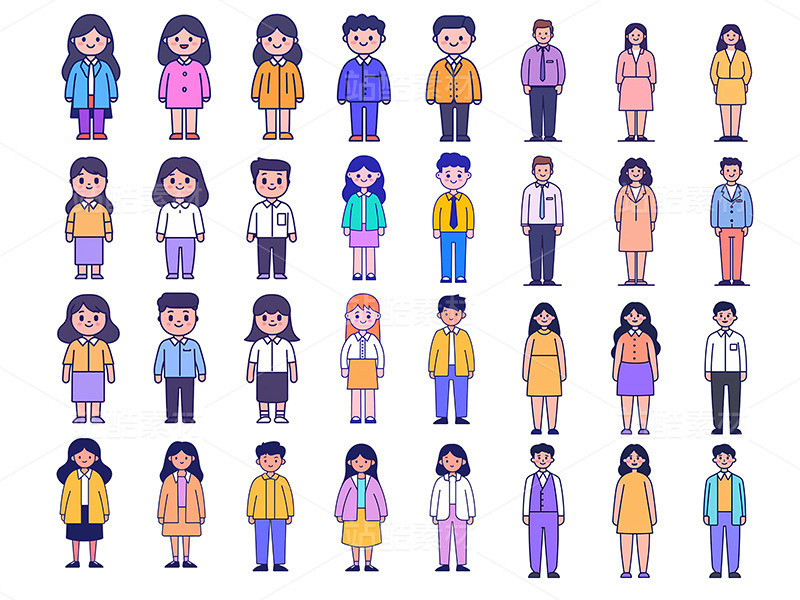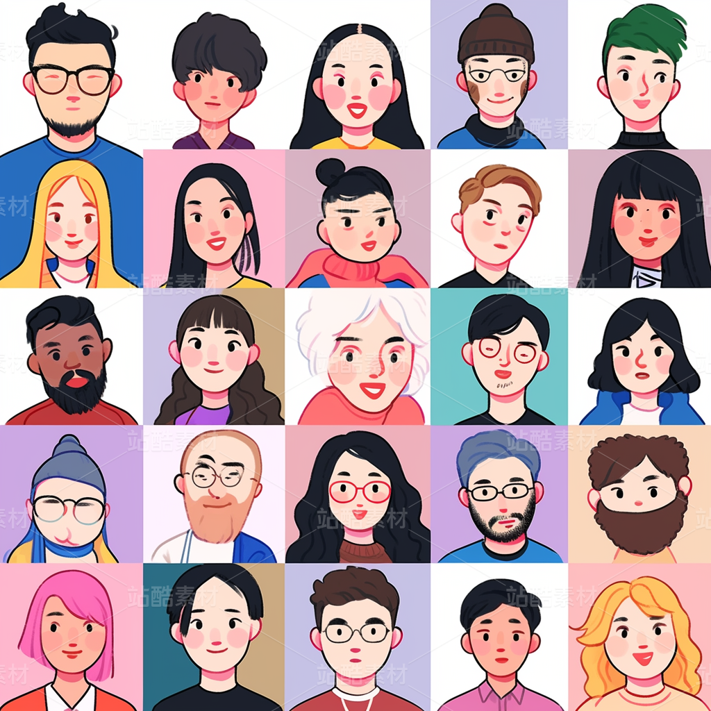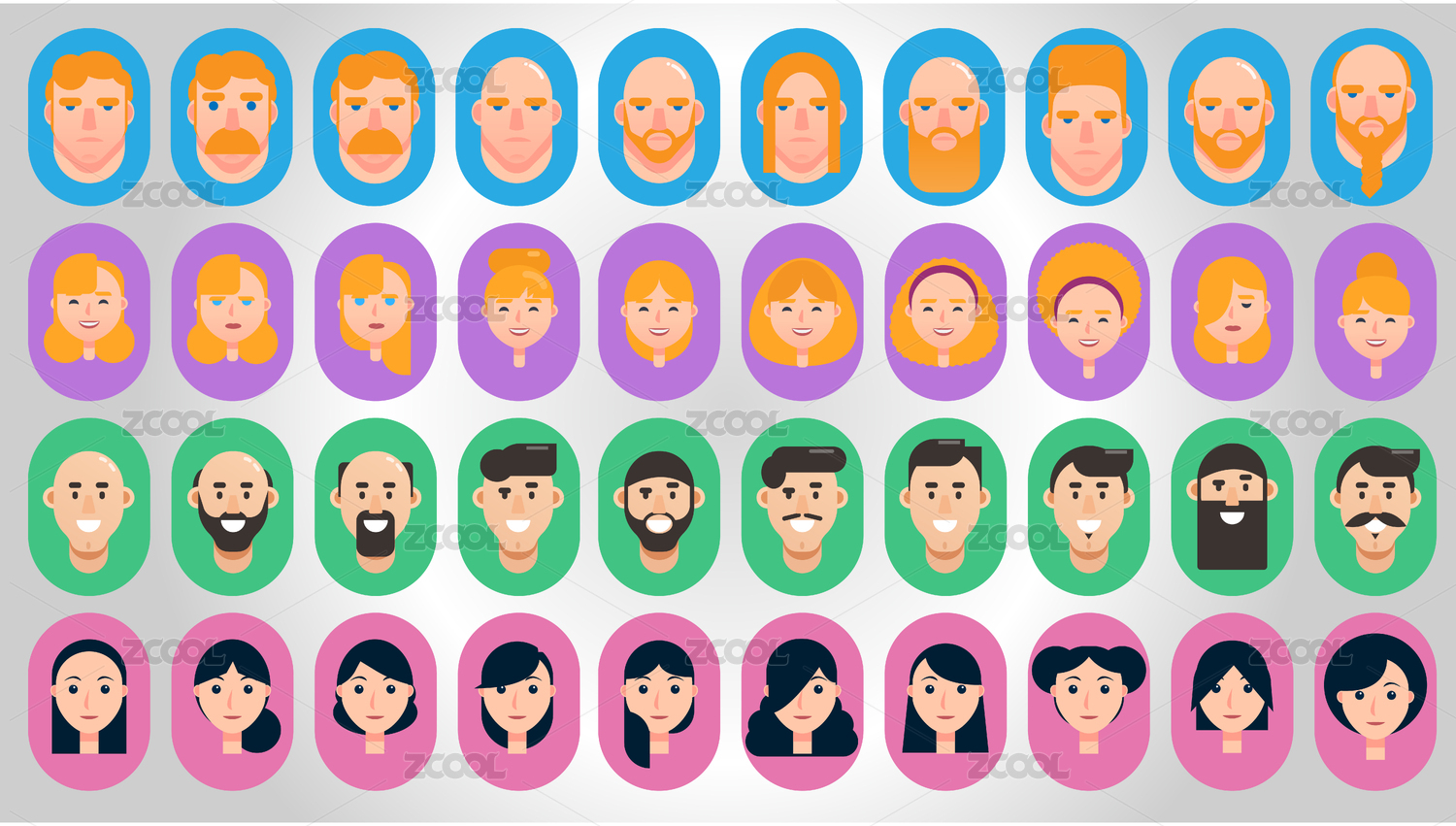 简易,简笔画,人物,头像,职场,世界,种族,素材,扁平,矢量