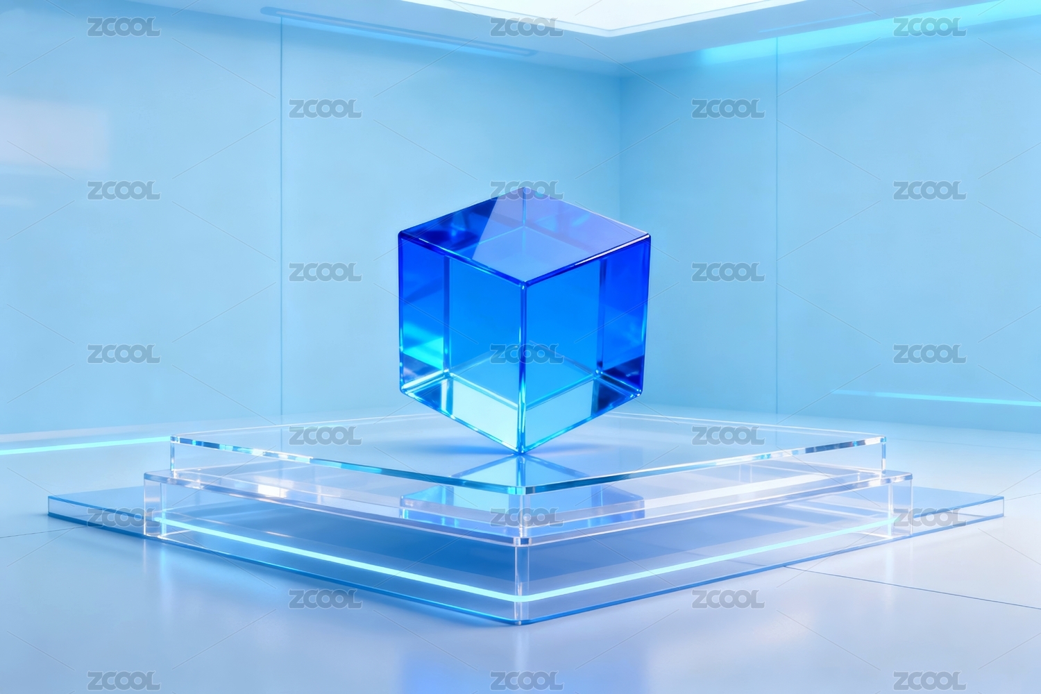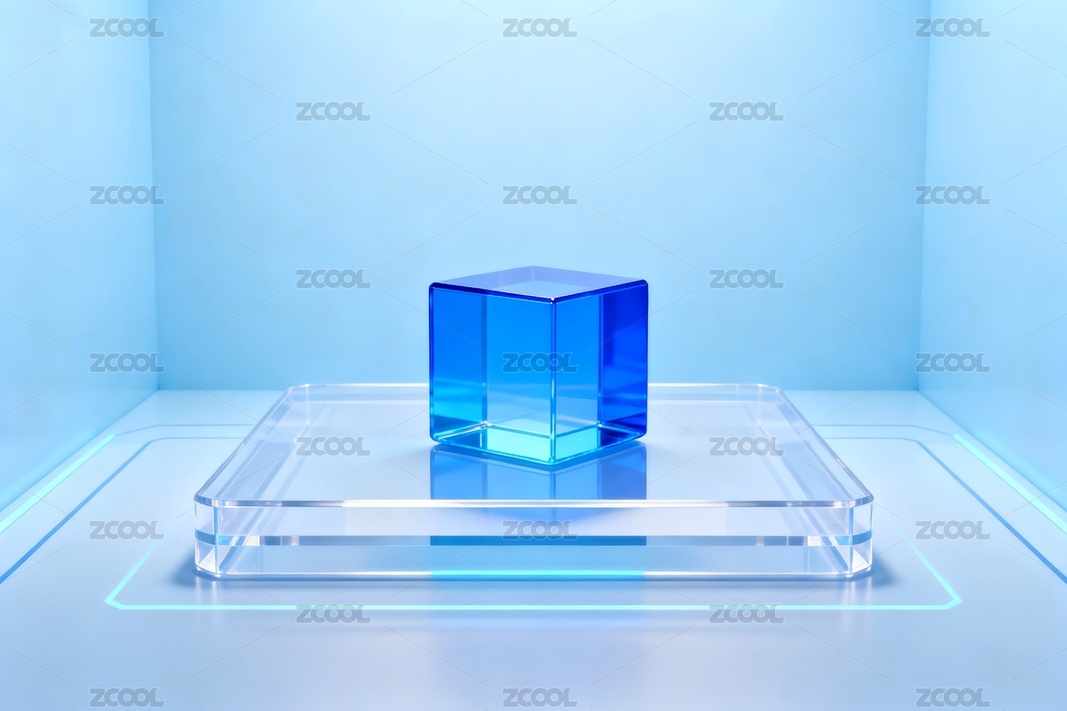 主视觉,商业,壁纸,蓝色,方块,展示,场景,透明,平台,光泽