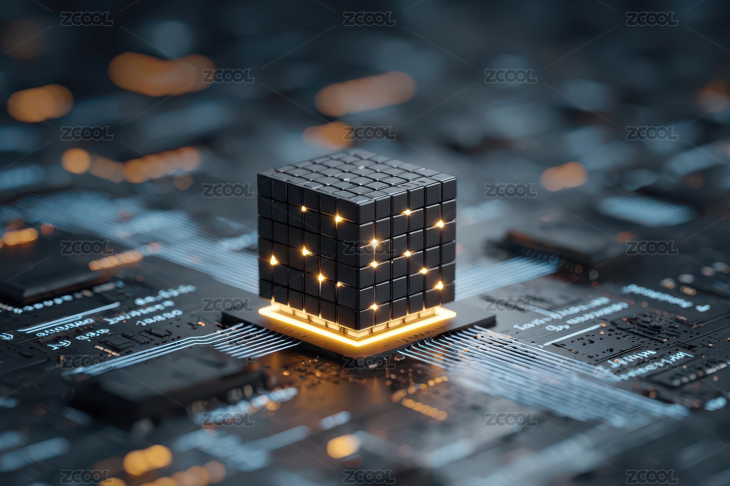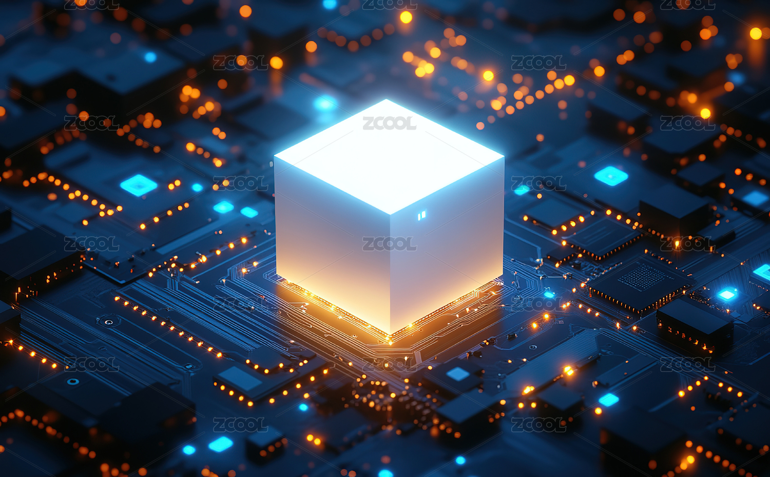 未来科技芯片与发光立方体