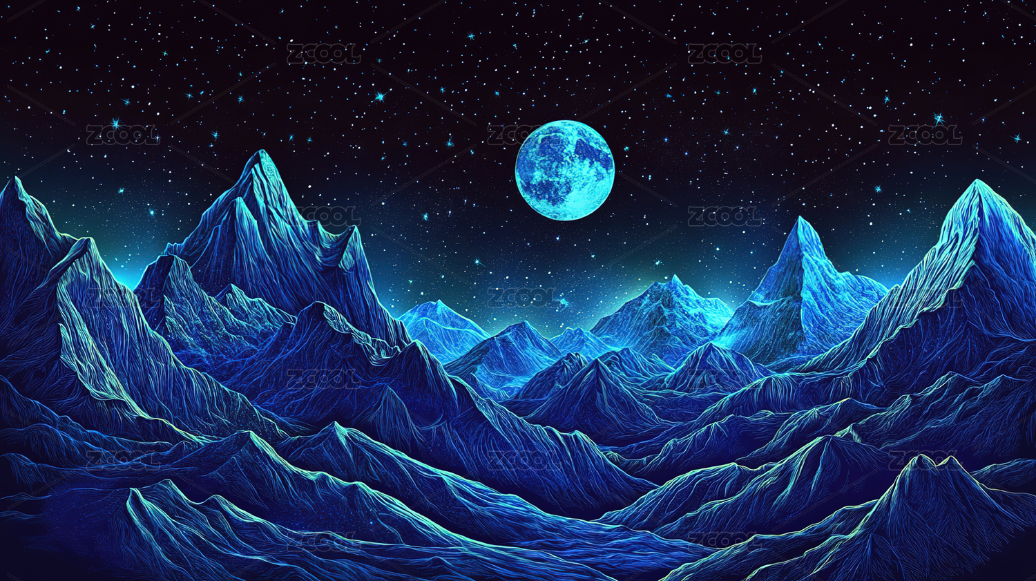光影,色彩,月光,星空,山峦,层次,夜晚,宁静