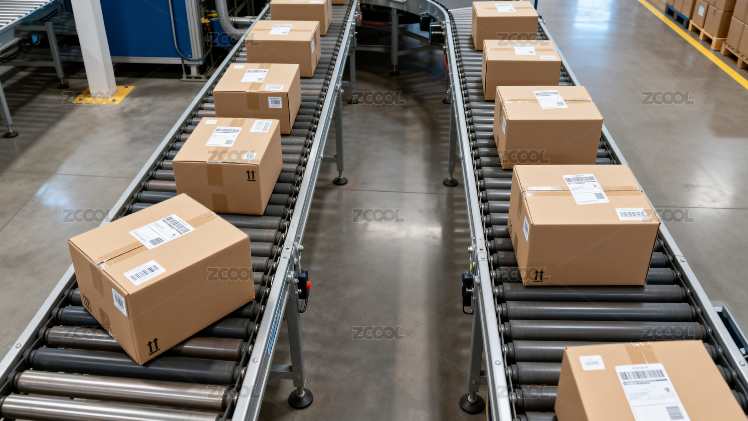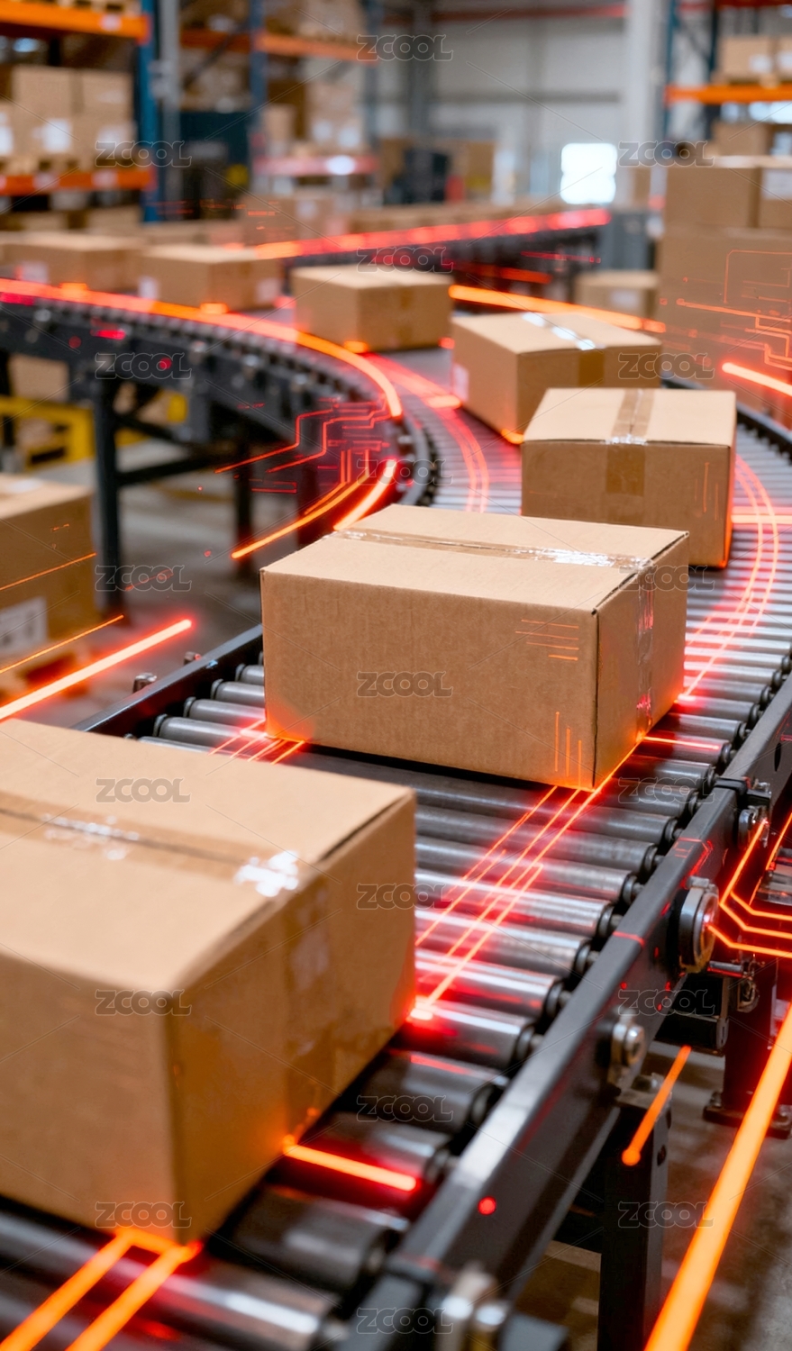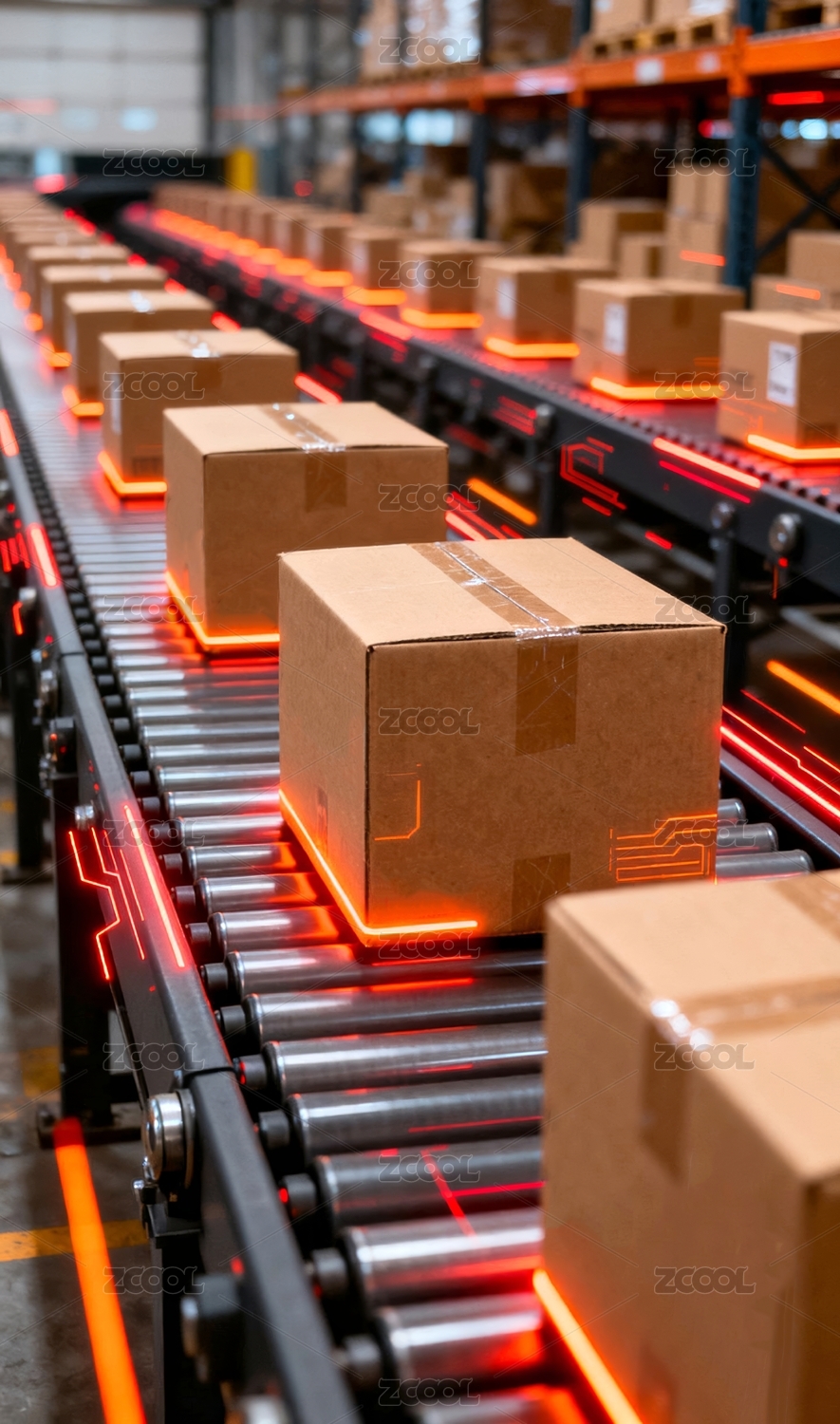 主视觉,商业,壁纸,现代,纸箱,流水线,物流,分拣,运输,传送带