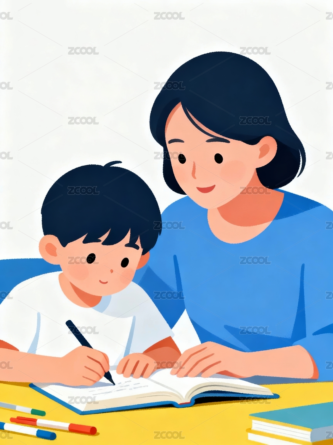 主视觉,商业,壁纸,亲子,家教,作业,辅导,场景,母子,书写