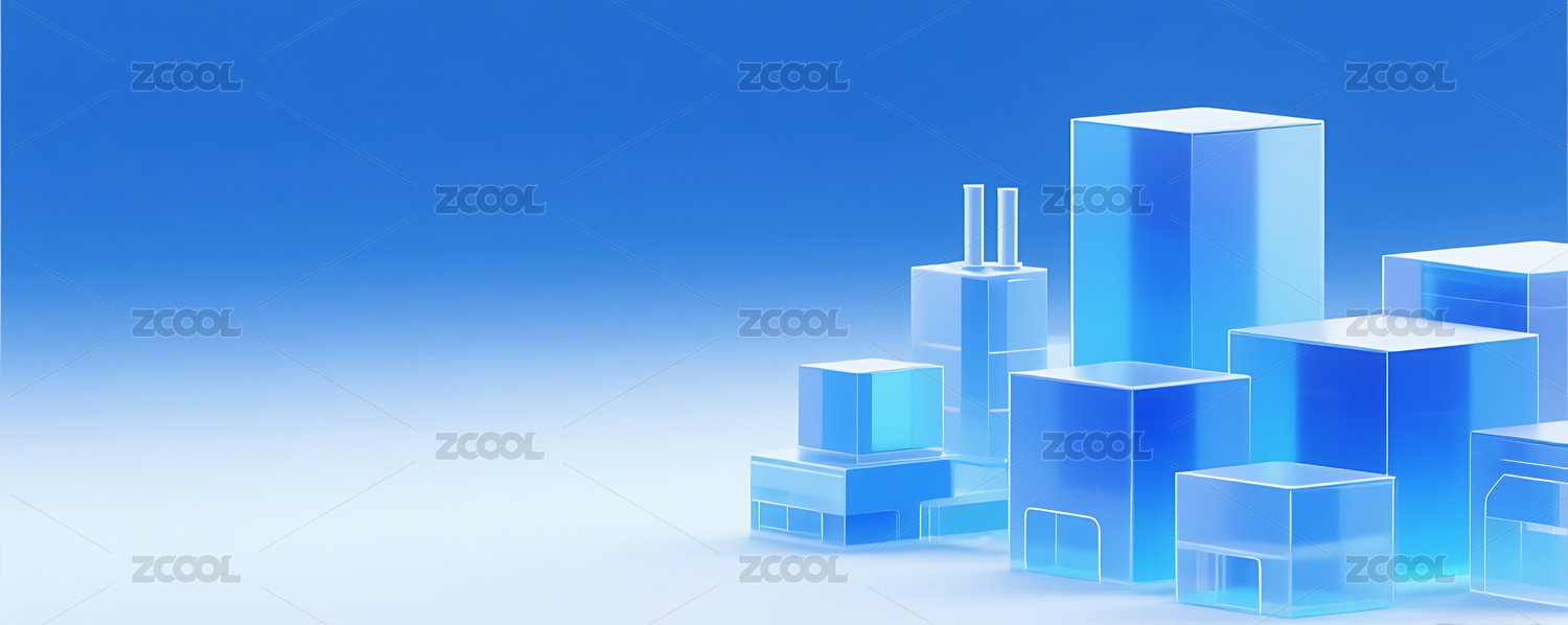 3D蓝色渐变玻璃质感工业工厂建筑背景