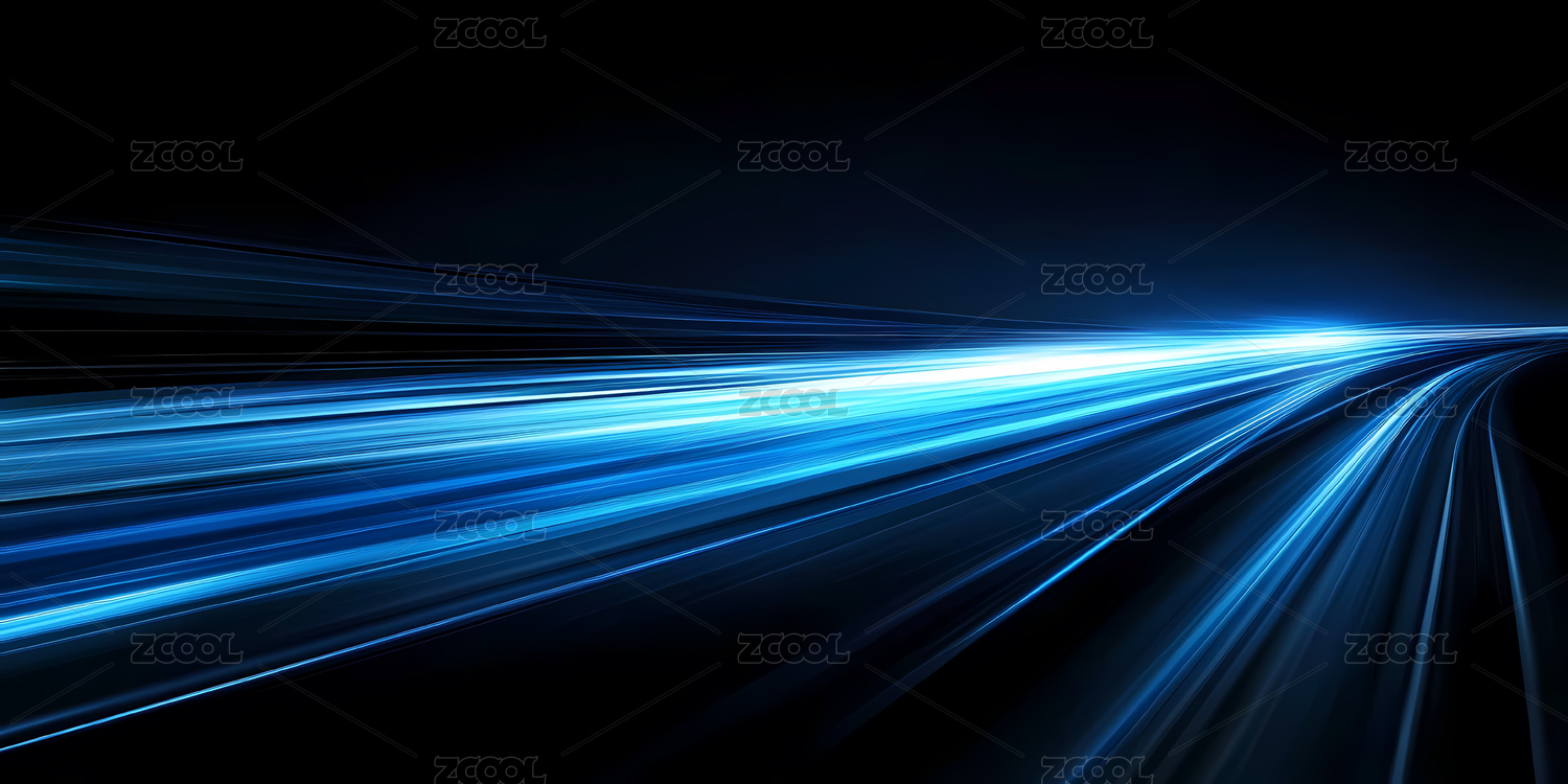 蓝色光轨划破深邃黑暗空间