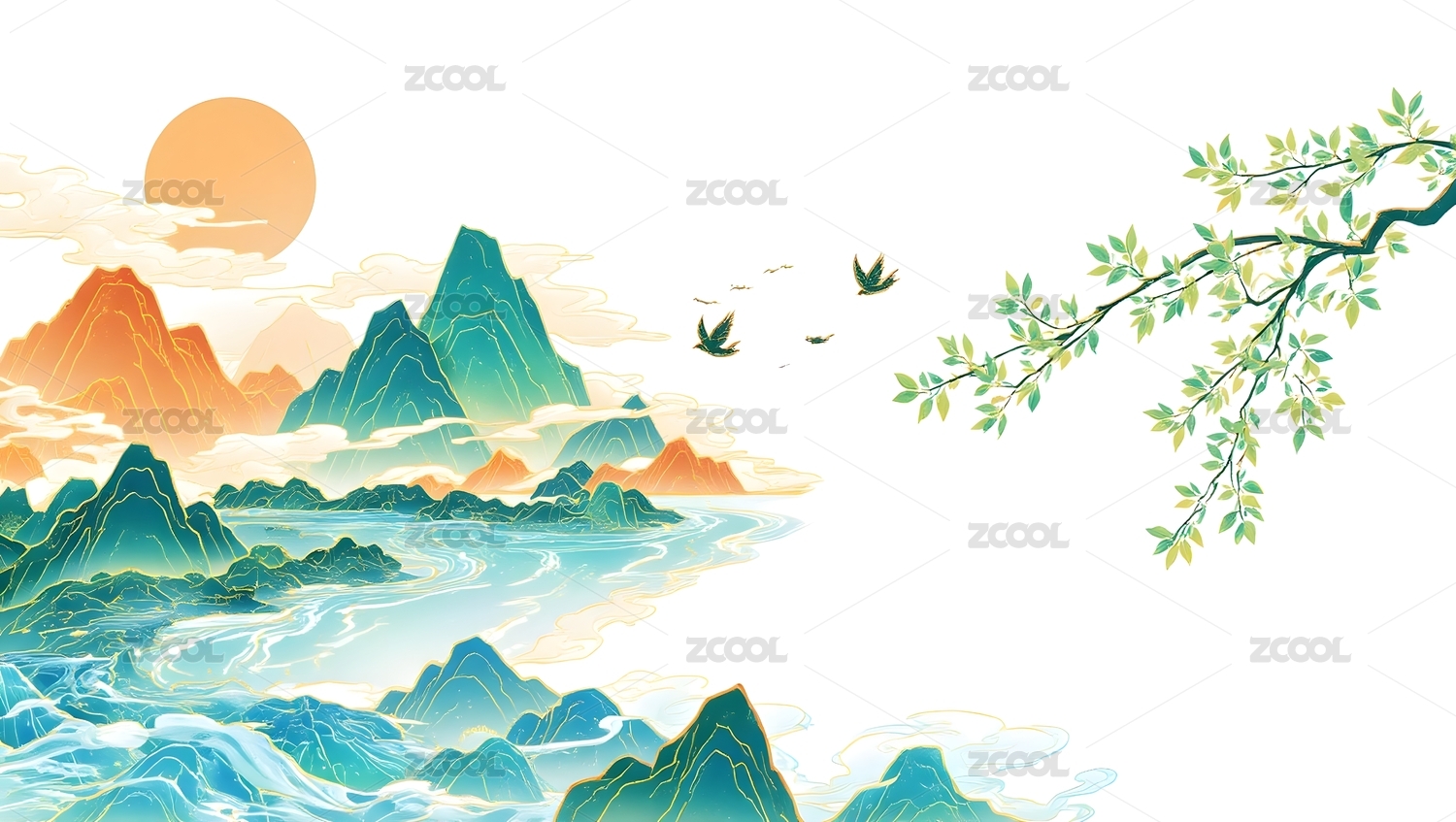 中国风春分抽象艺术柳树泼墨晕染诗意水墨画