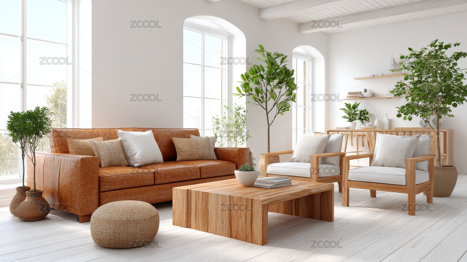 明亮现代的客厅室内场景