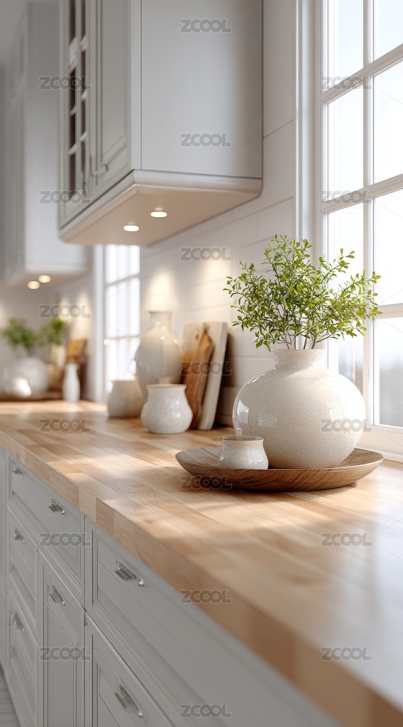 明亮 airy 厨房台面与绿植