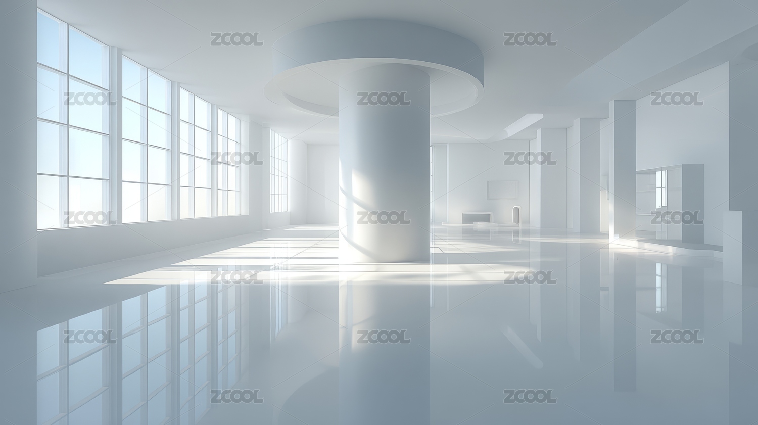 现代明亮宽敞白色室内空间