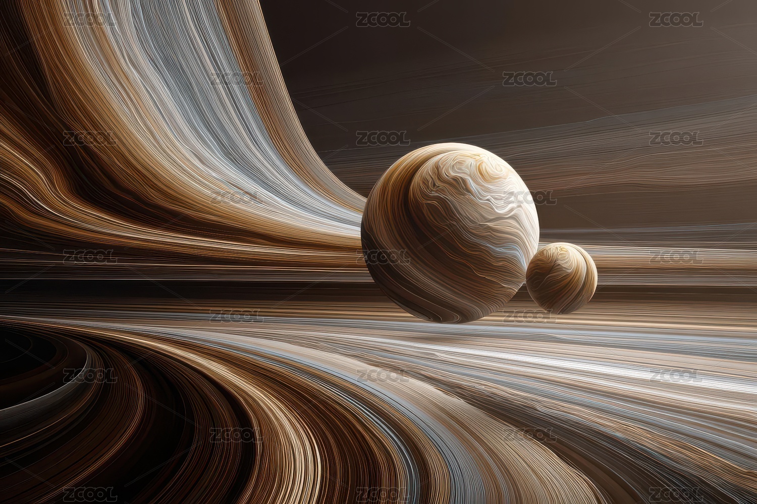 抽象星球与流动线条的奇幻艺术