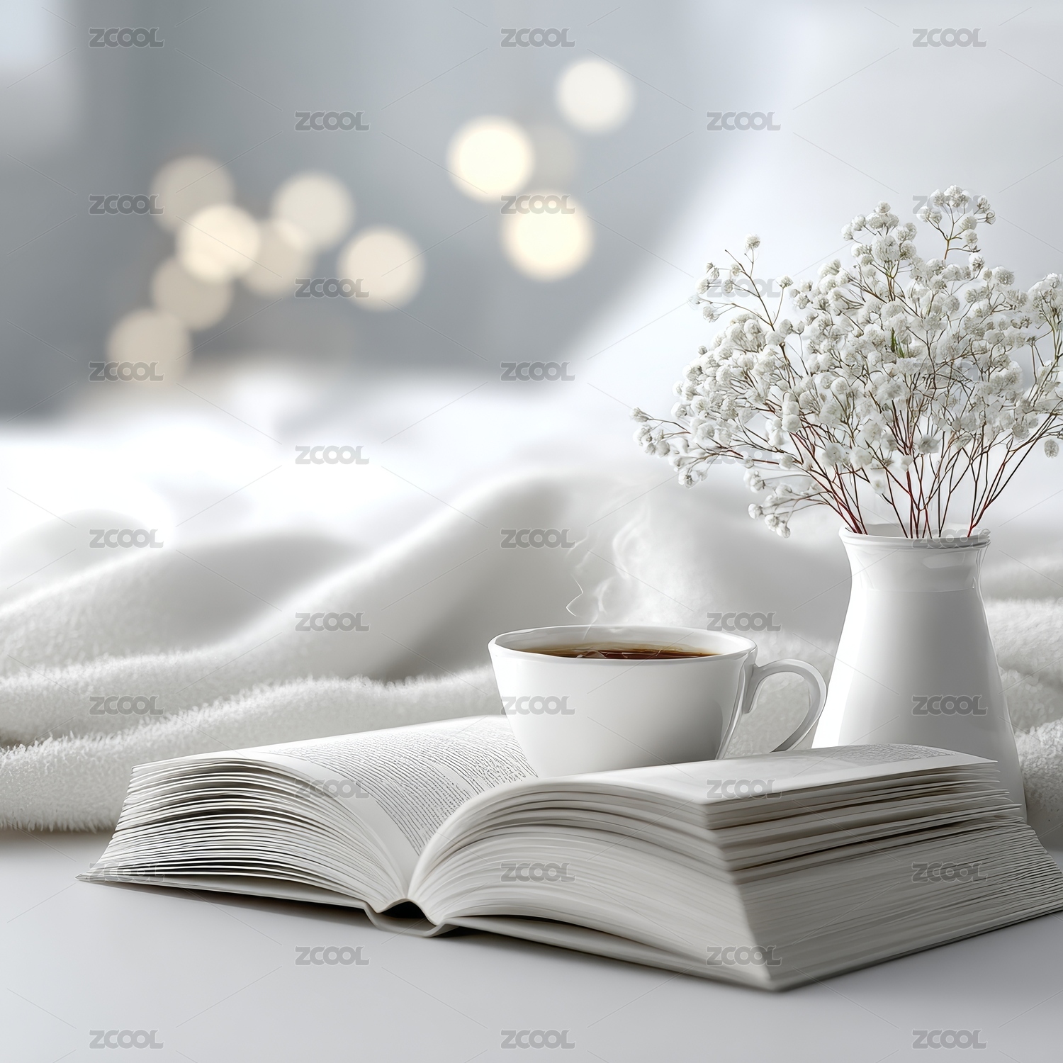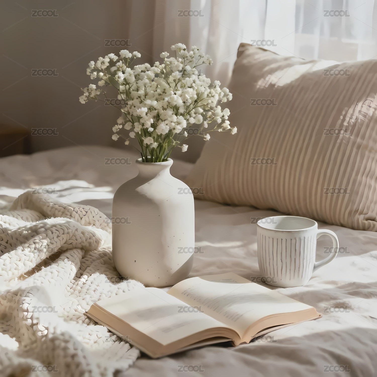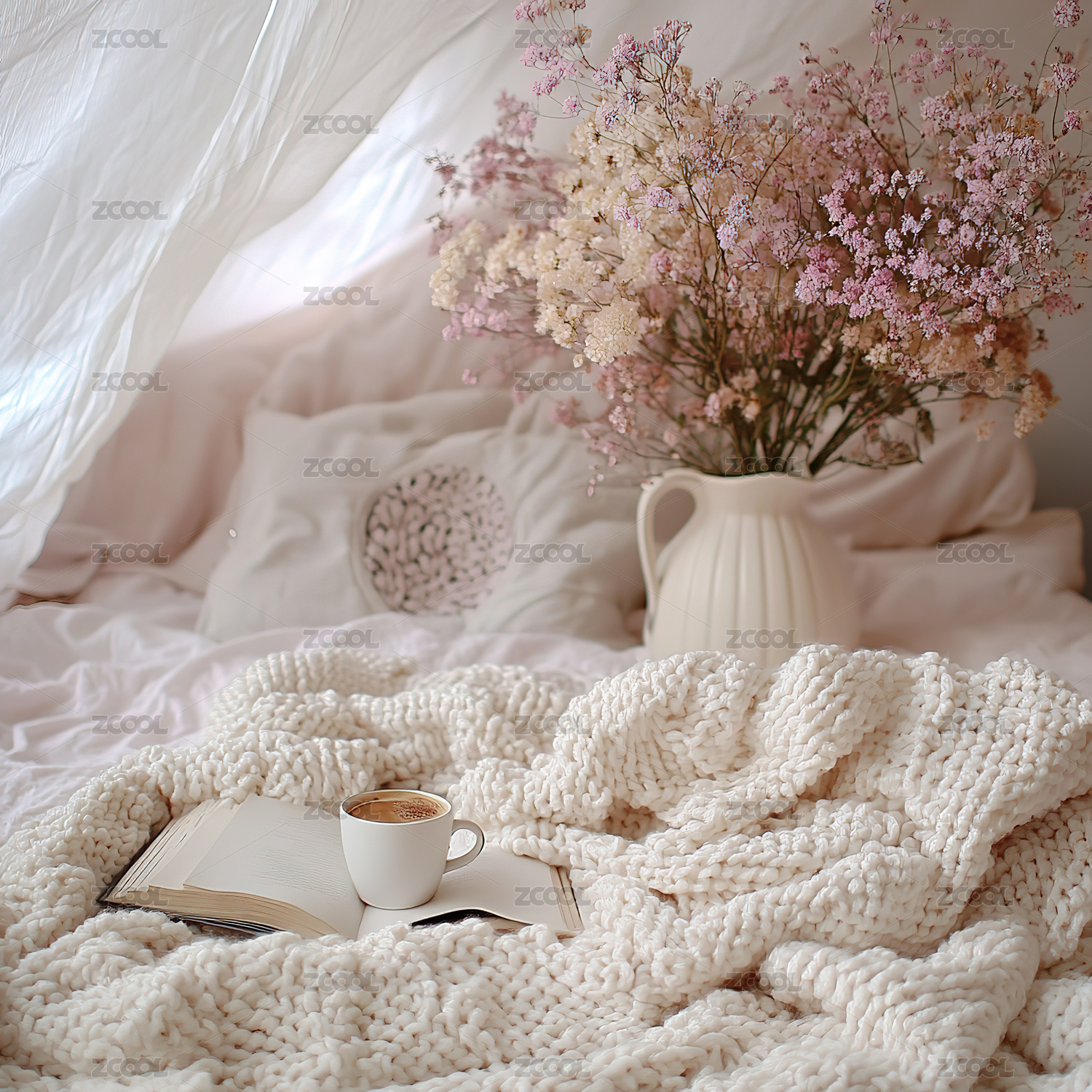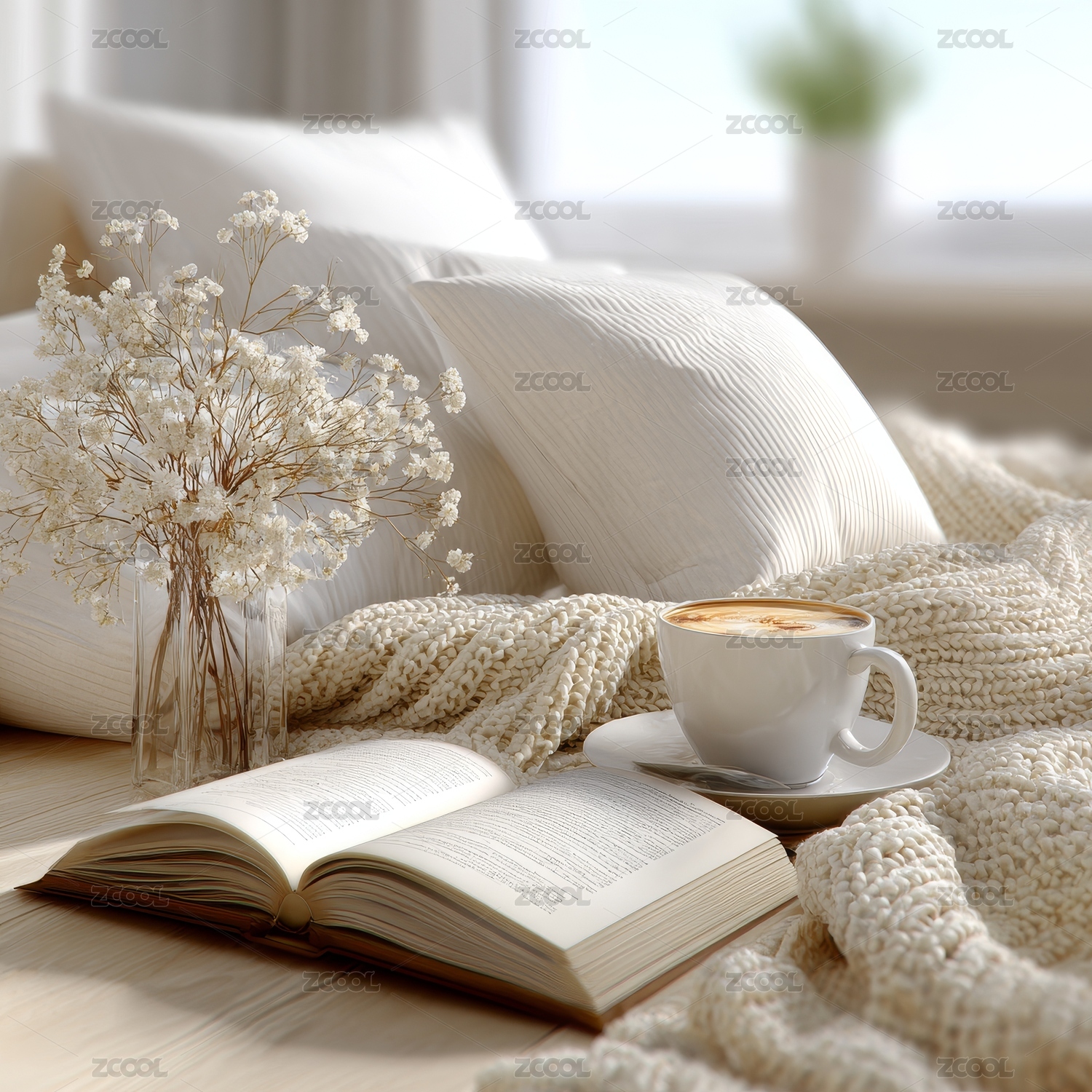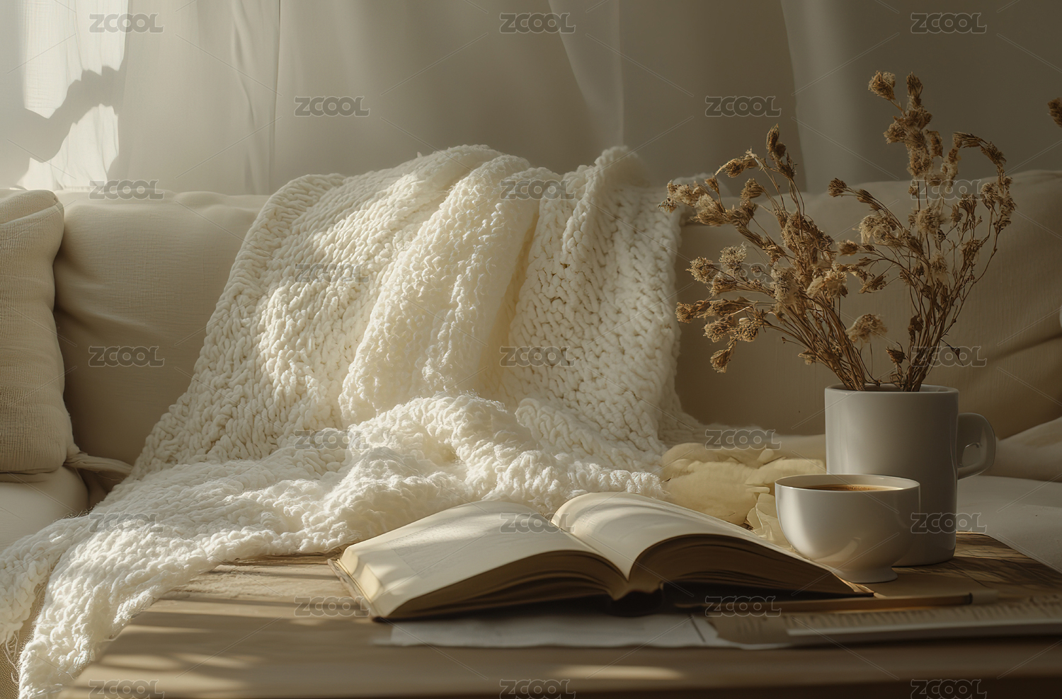温馨,家居,室内,舒适,宁静,放松,书籍,咖啡,毛毯,花朵