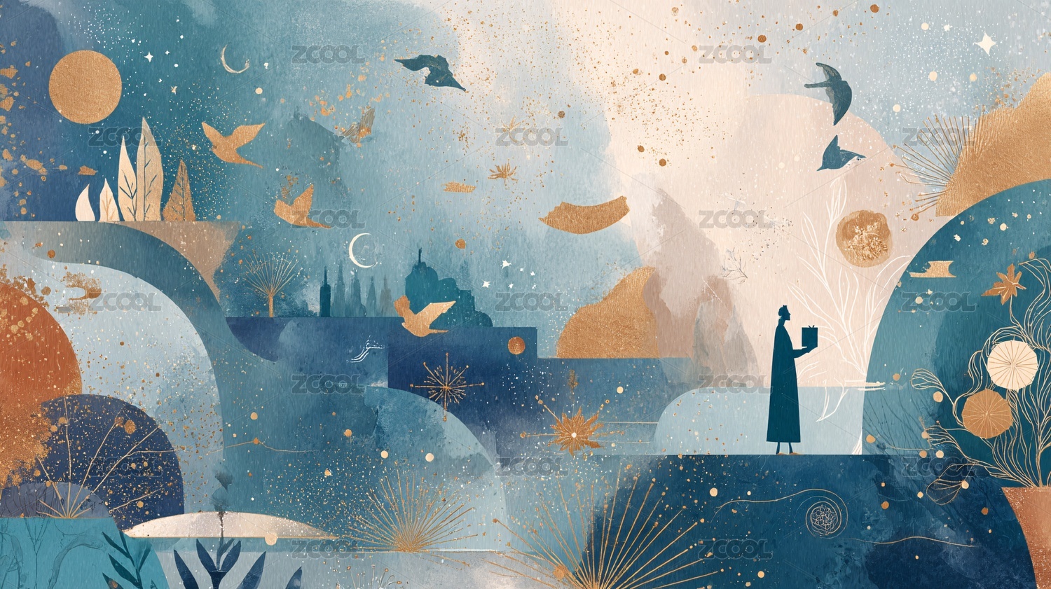 梦想的脚步走在草丛里花朵上女孩坐着鸟飞翔