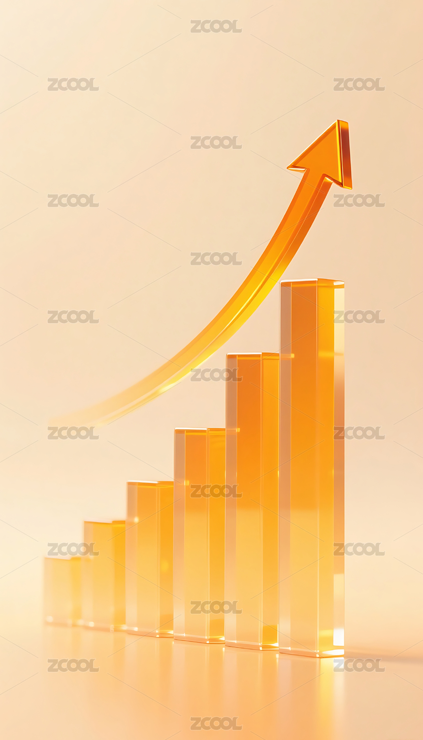 橙色渐变玻璃质感金融柱状图增长箭头背景