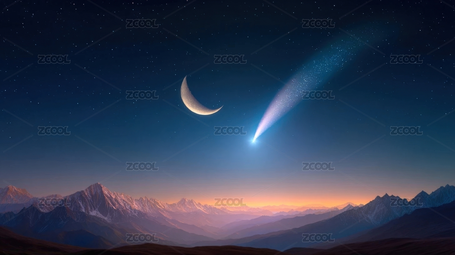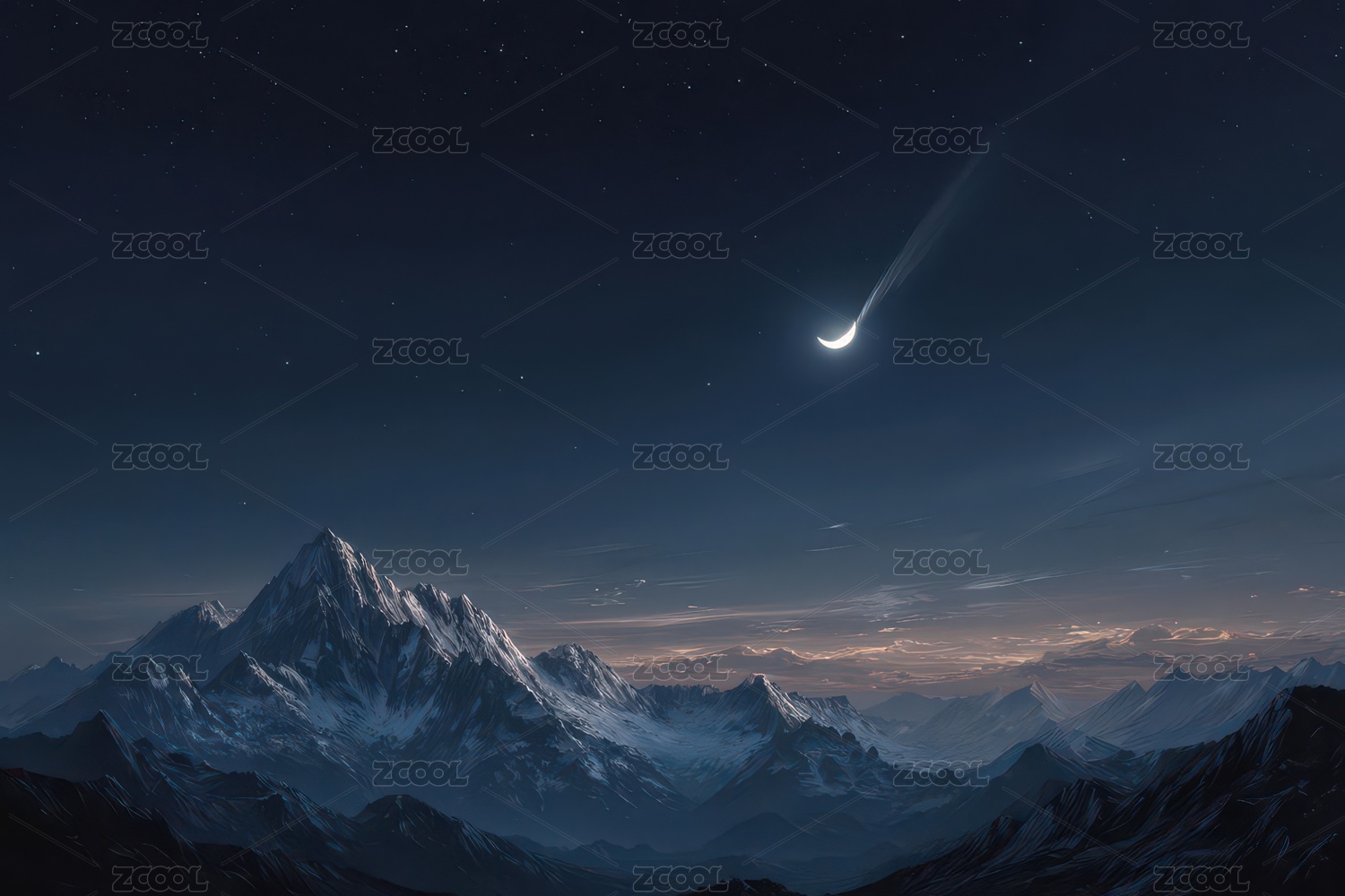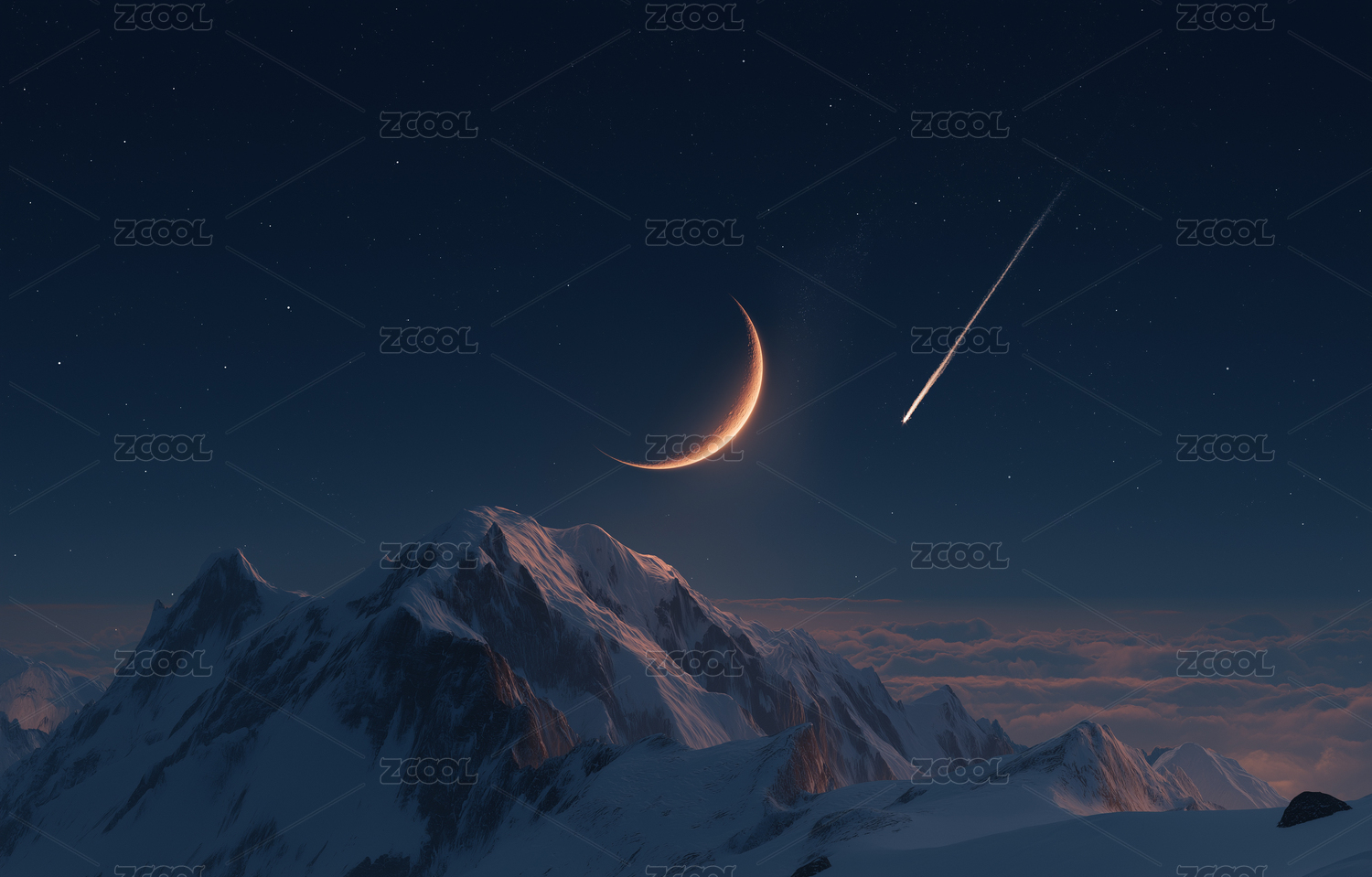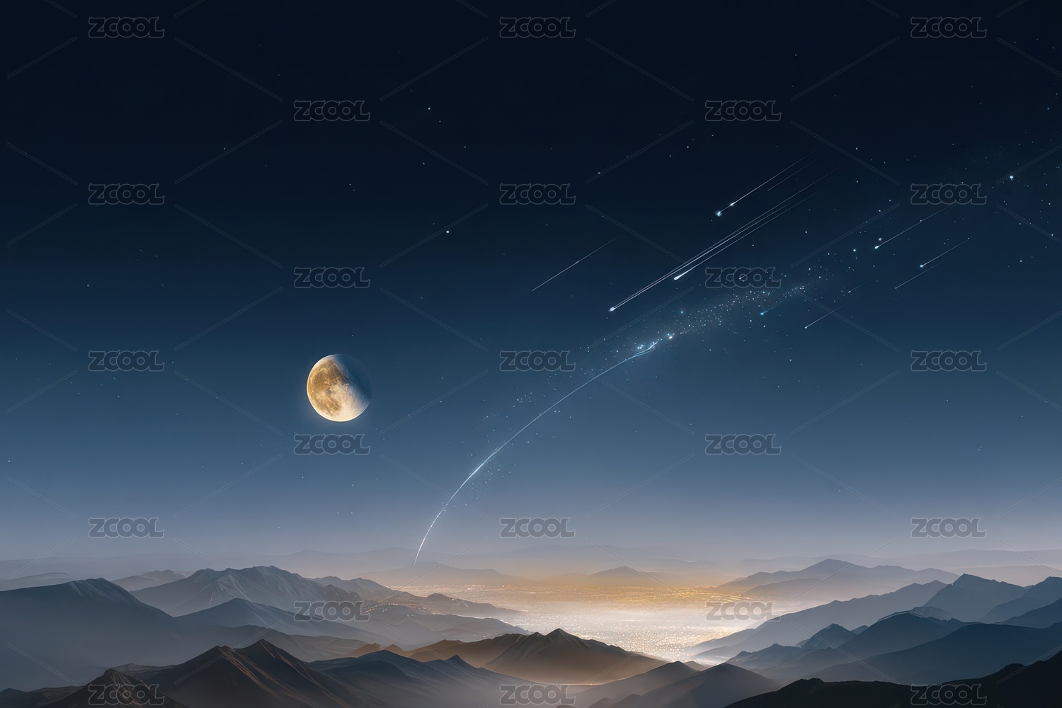 月亮,夜空,流星,山峰,光芒,云层,天空,星辰