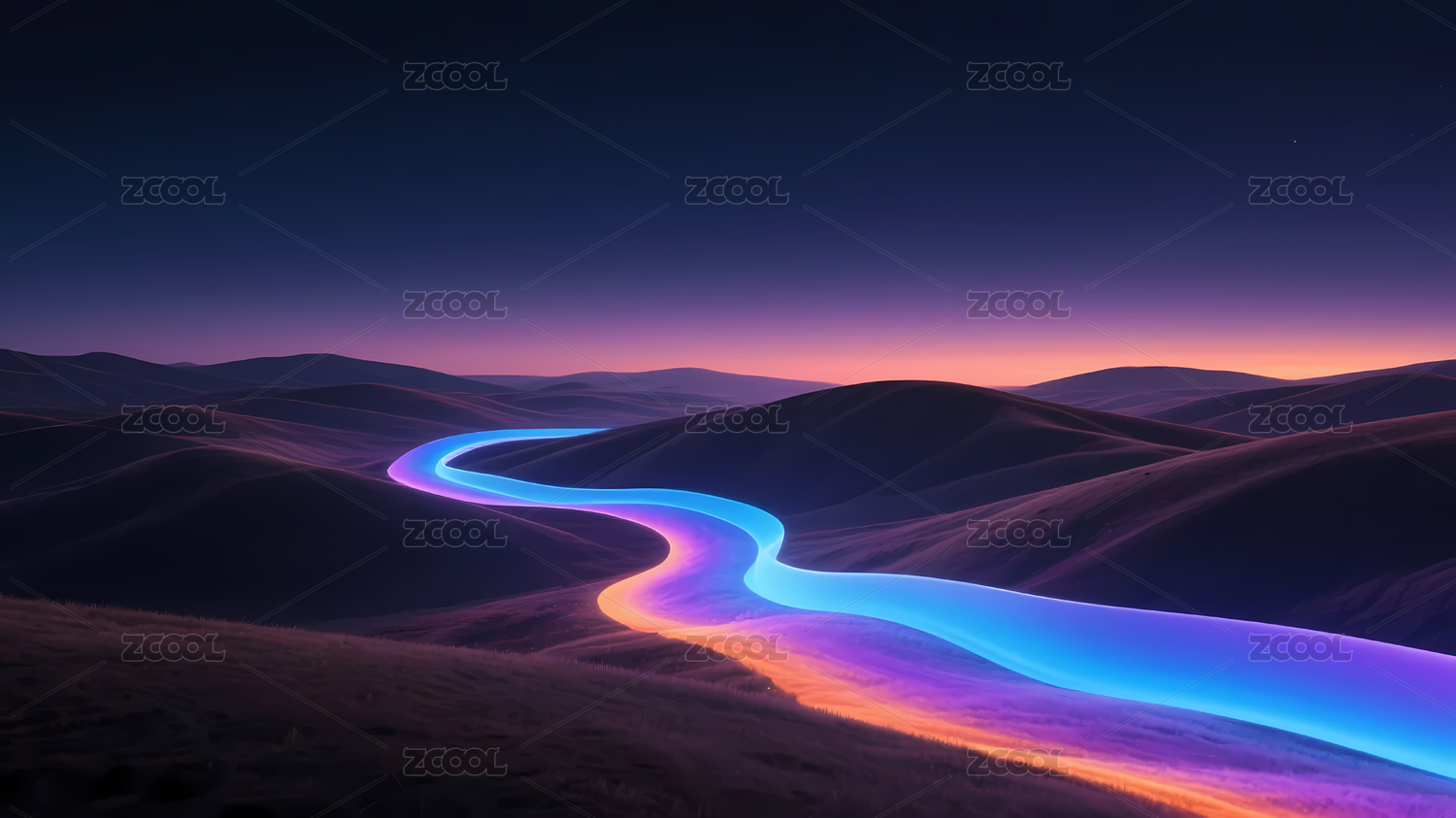 星空下的紫色沙丘与橙色光轨