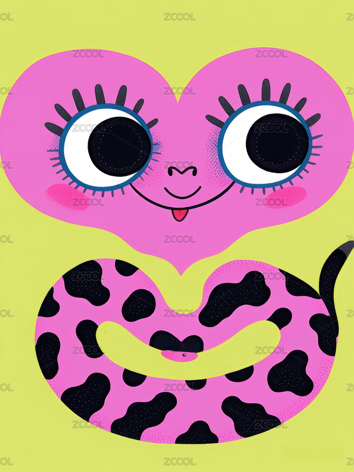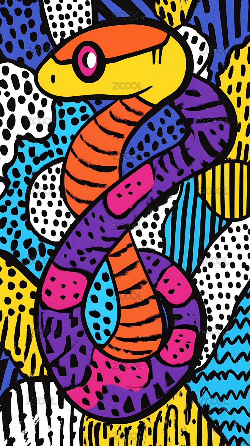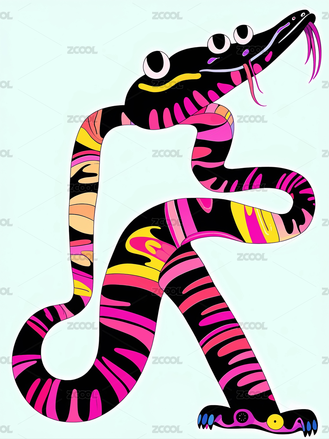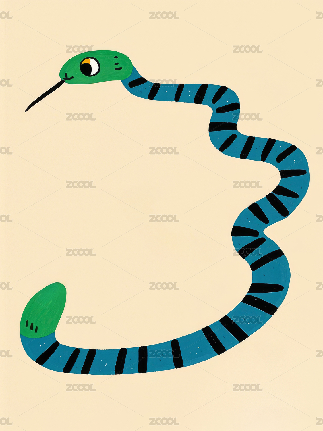 扁平风格的戏曲脸谱和蛇创意组合图案